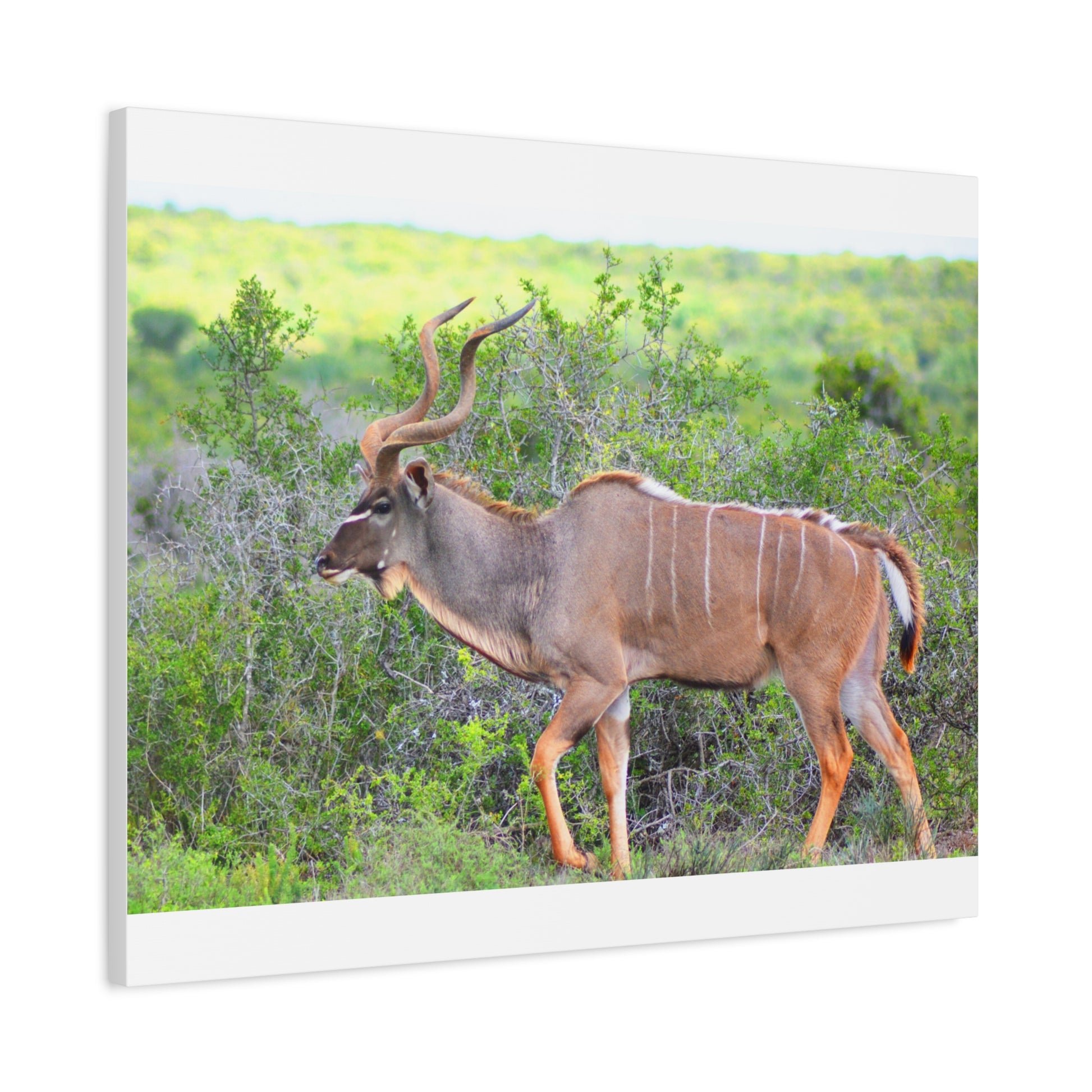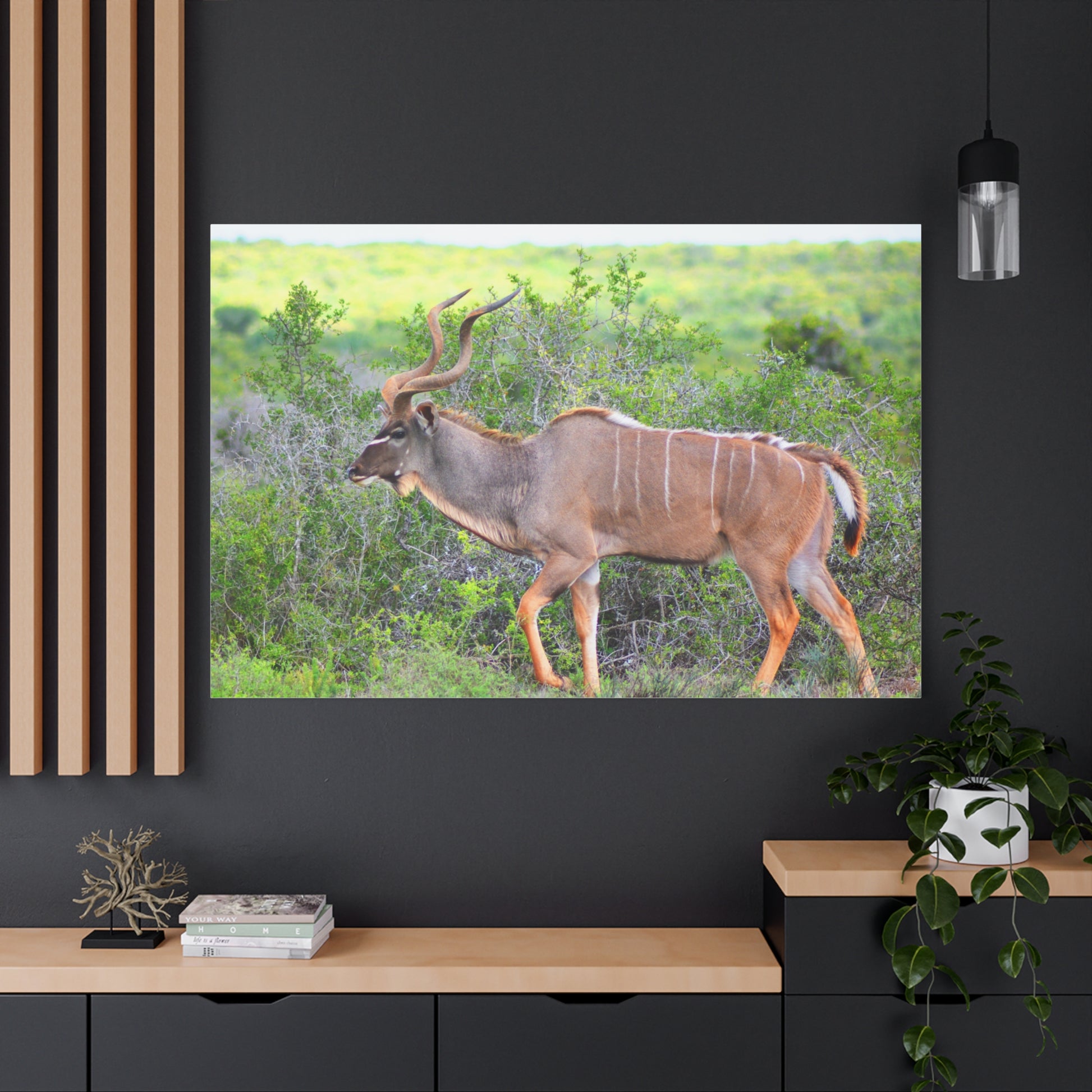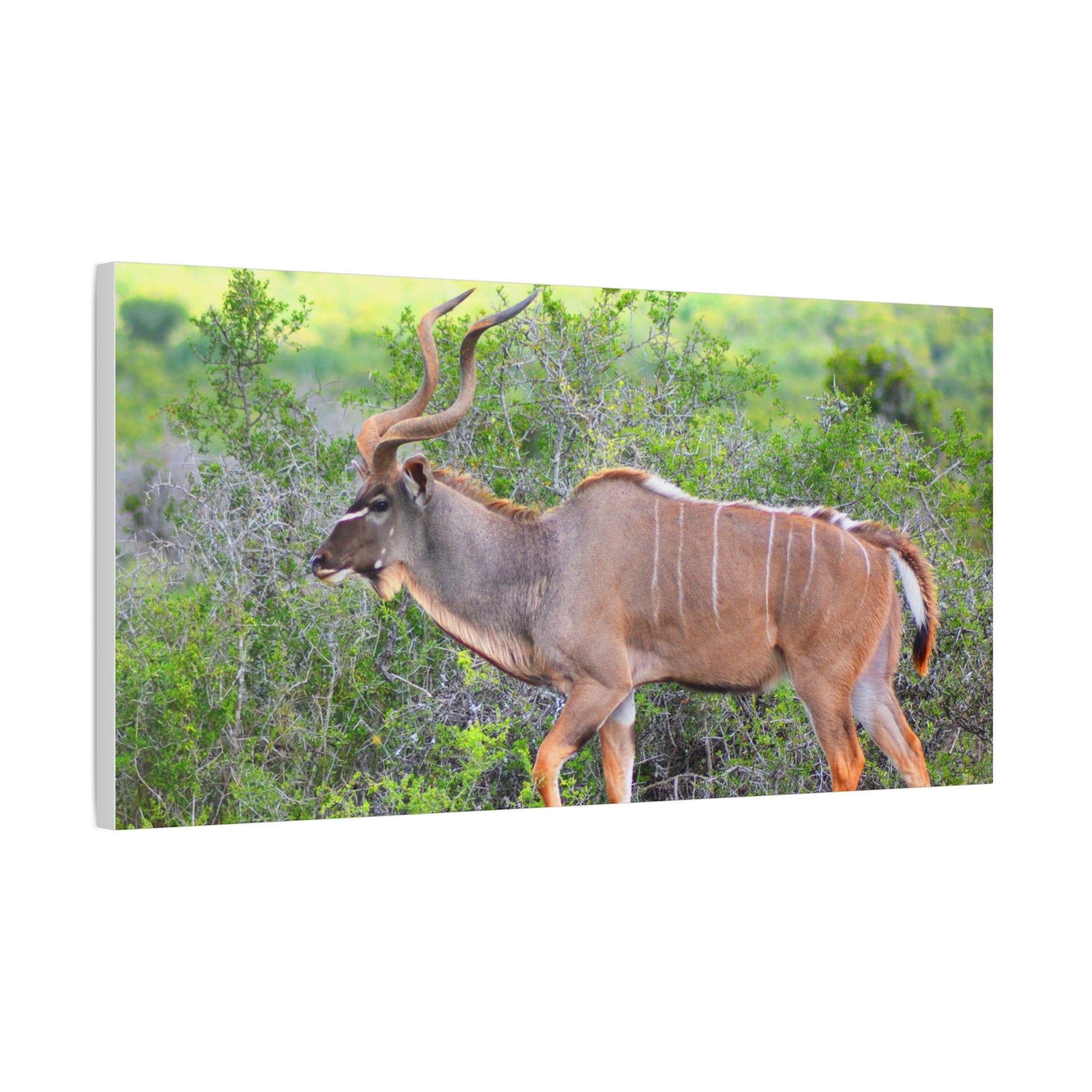 Bring the majesty of this Kudu bull in Africa into your home with this stunning canvas print. Perfect for nature lovers and wildlife enthusiasts, this piece will add a touch of exotic flair to any room. Ideal for decorating living rooms, offices, or as a gift for animal lovers. Perfect for Earth Day, World Wildlife Day, or any occasion.