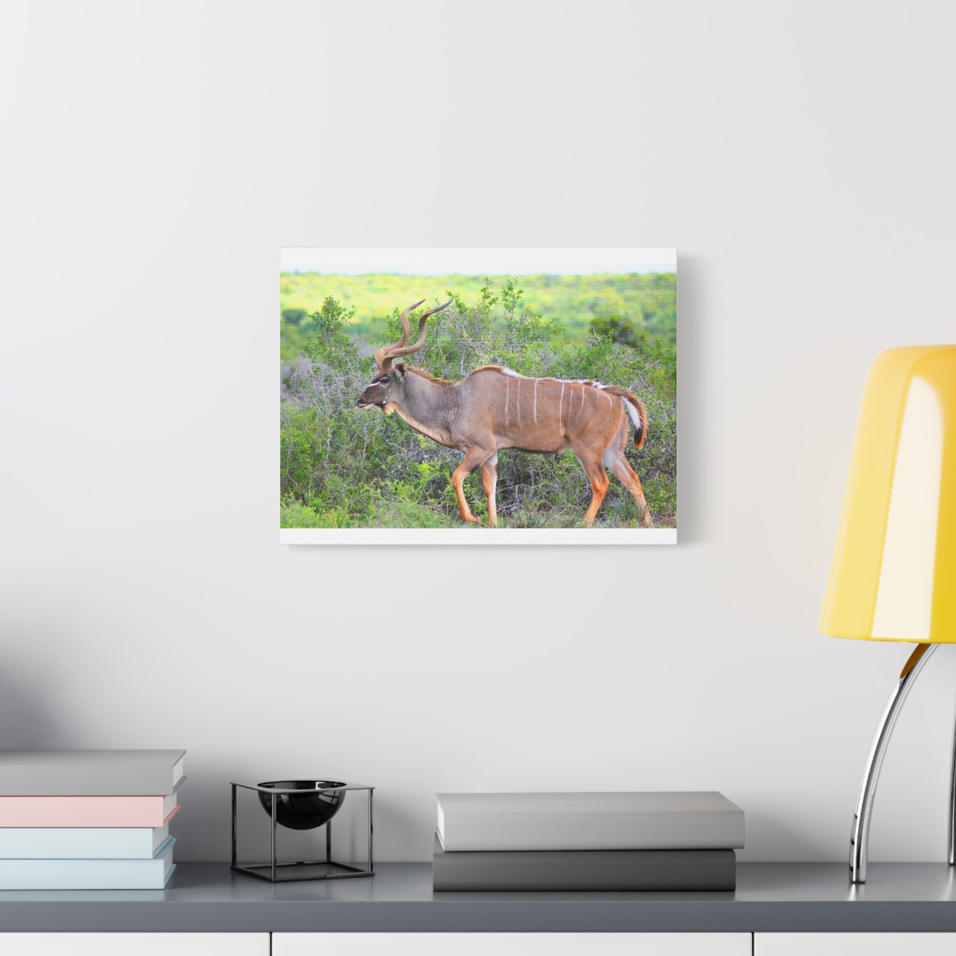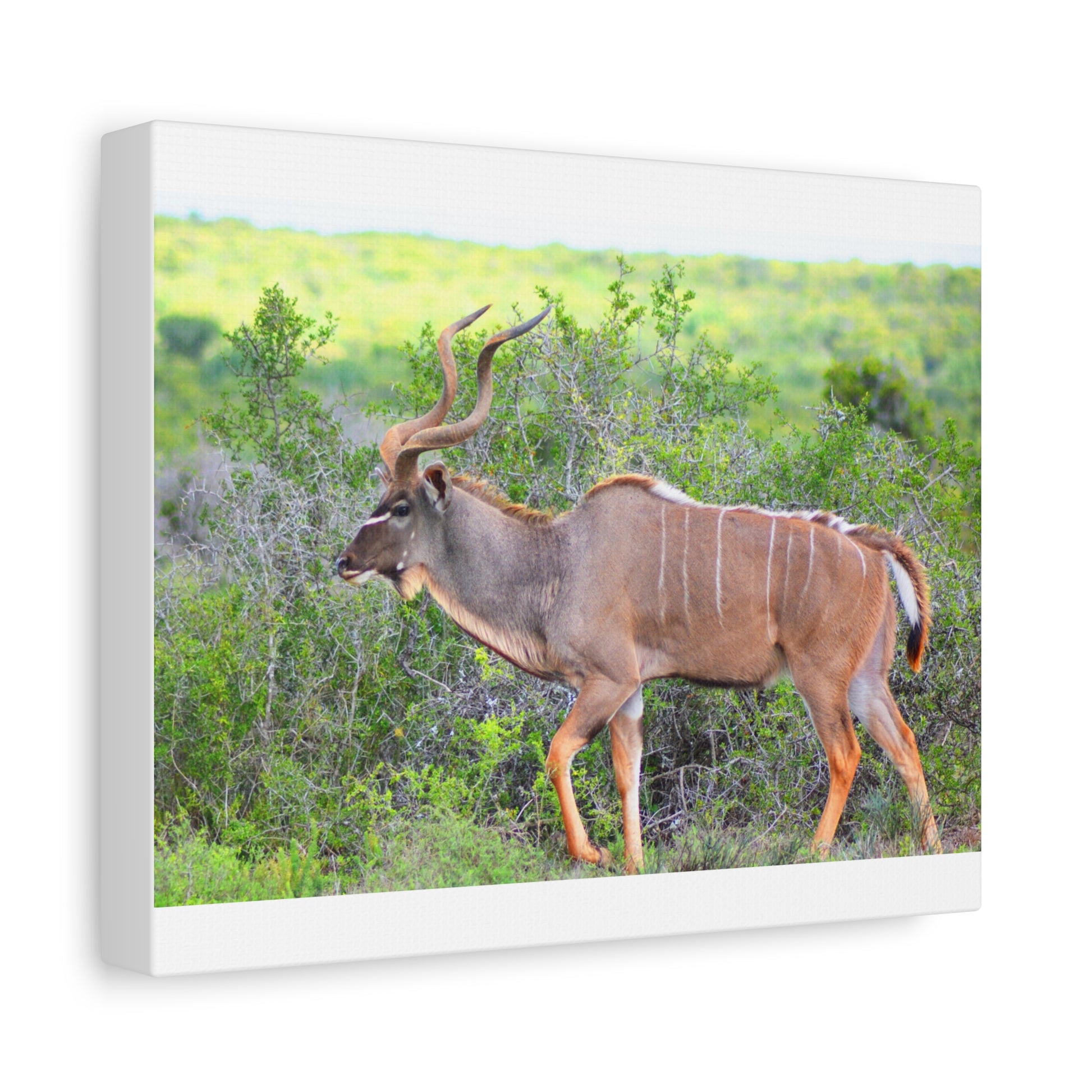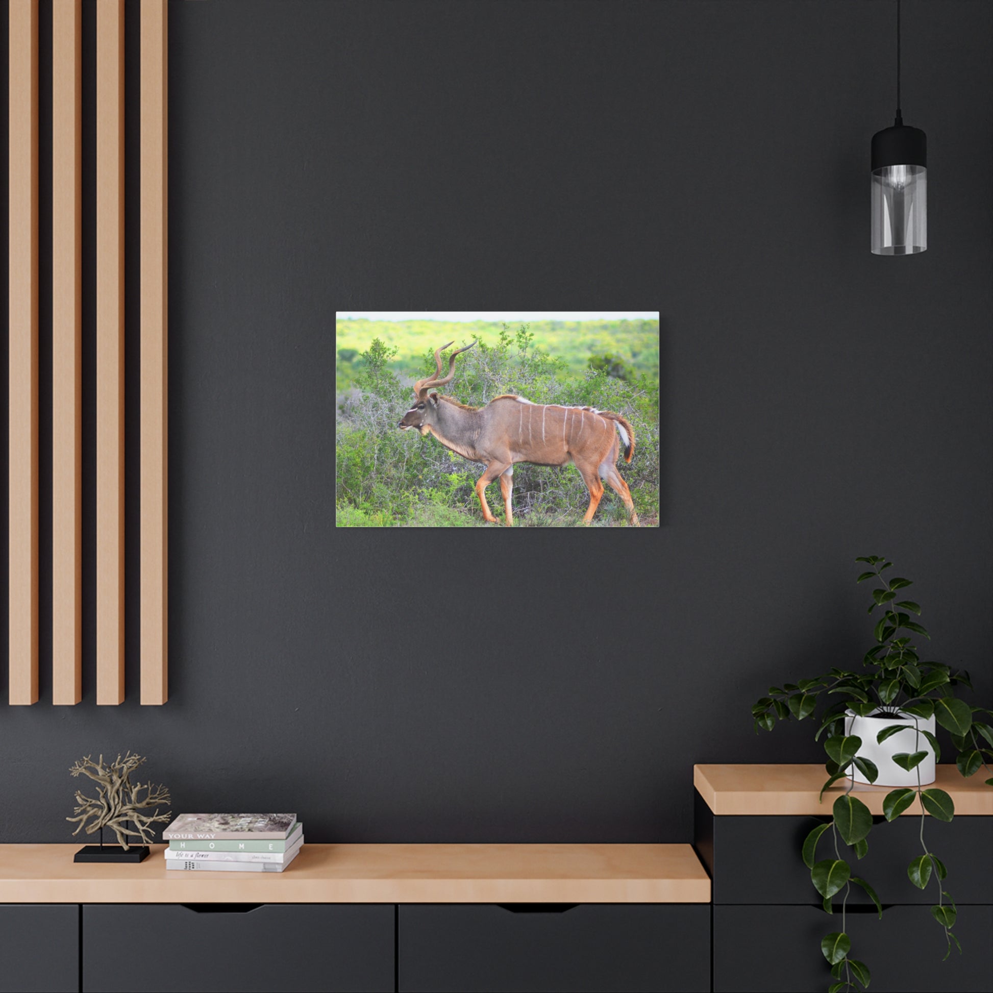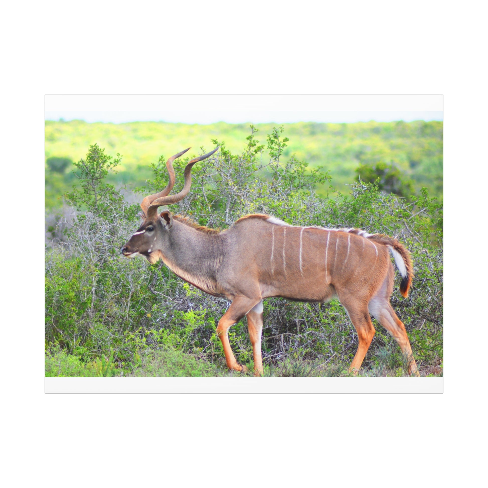 Bring the majesty of this Kudu bull in Africa into your home with this stunning canvas print. Perfect for nature lovers and wildlife enthusiasts, this piece will add a touch of exotic flair to any room. Ideal for decorating living rooms, offices, or as a gift for animal lovers. Perfect for Earth Day, World Wildlife Day, or any occasion.