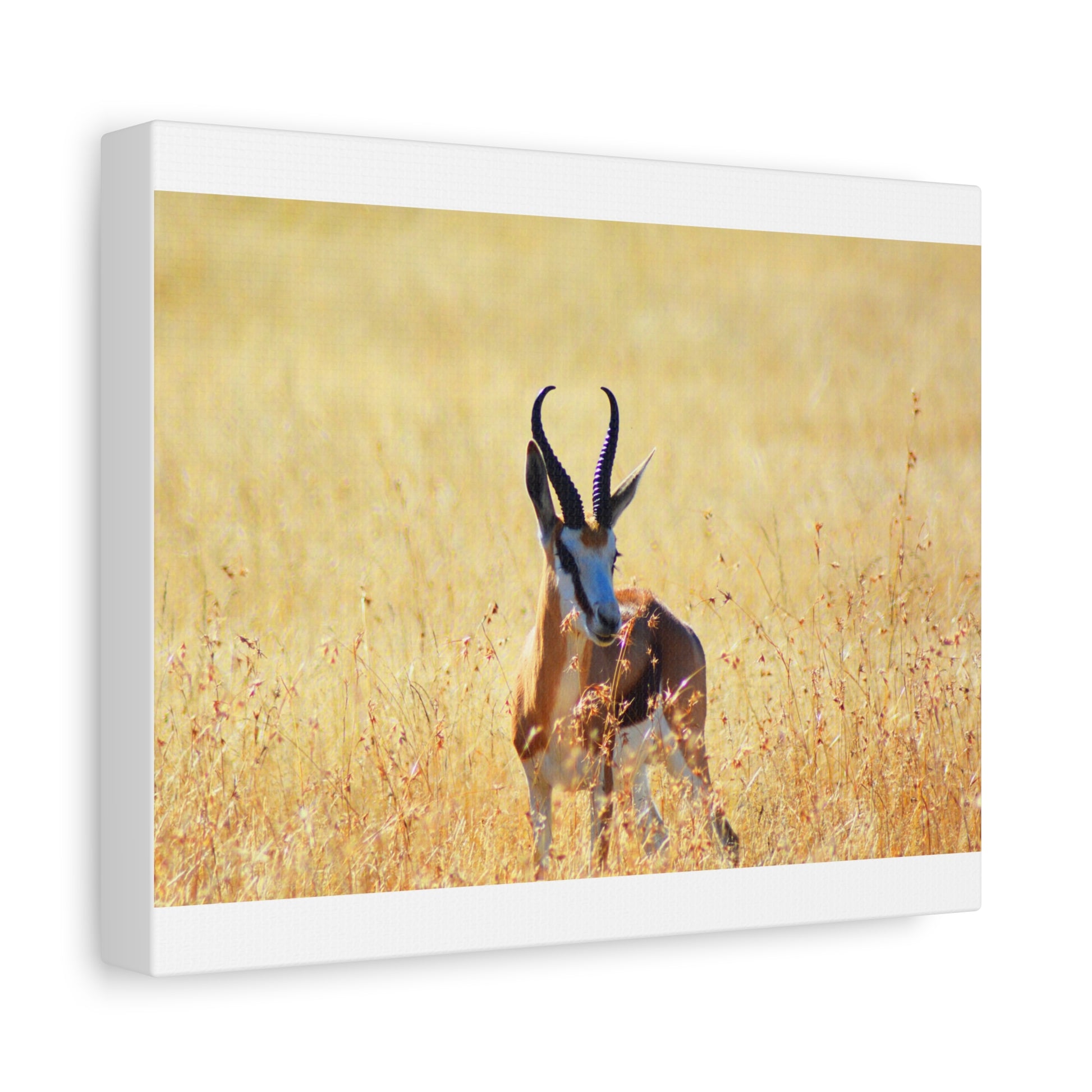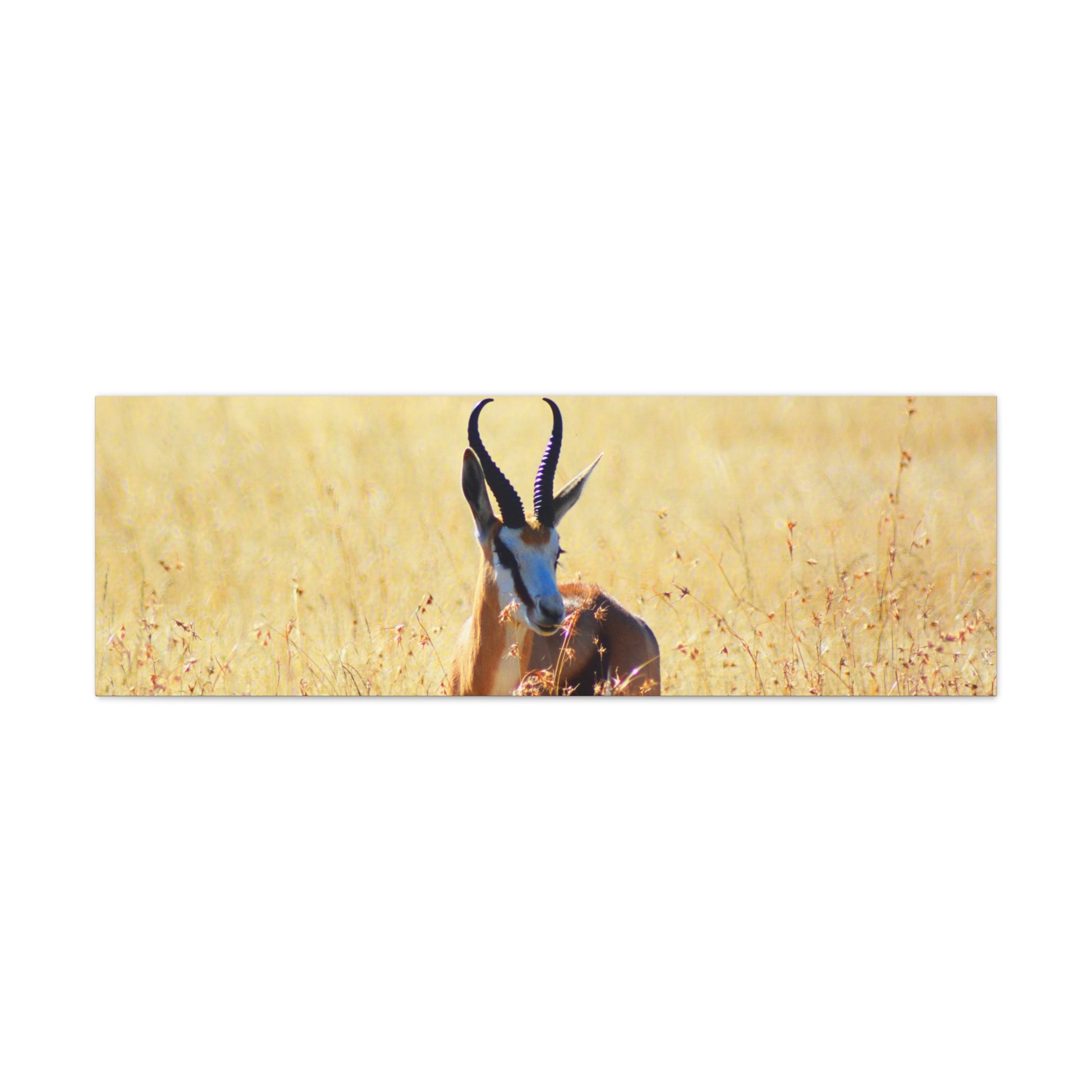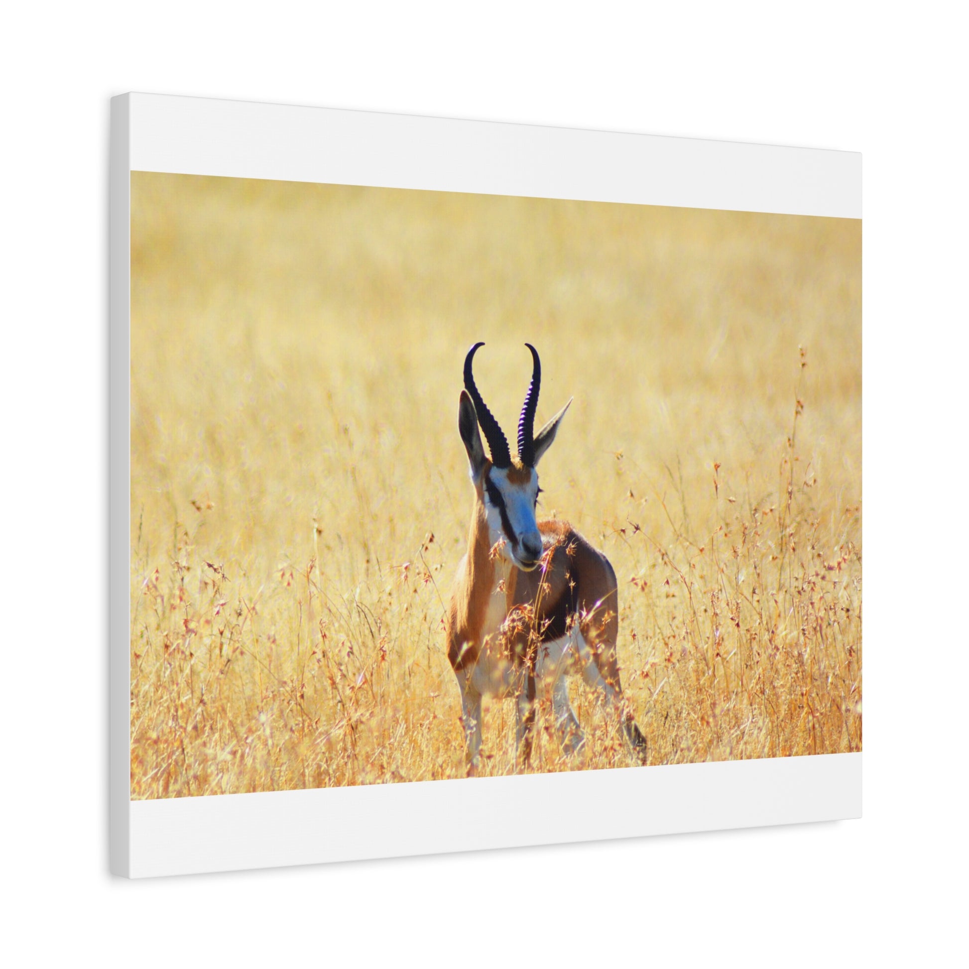 A stunning Matte Canvas print of a Springbok Ram in Africa, perfect for nature lovers and wildlife enthusiasts. Bring the beauty of the African savannah into your home with this unique piece that exudes a sense of adventure and natural beauty. Ideal for those looking to add a touch of the wild to their decor, this canvas print is a great gift for animal lovers and those who appreciate the beauty of nature. Perfect for Earth Day, wildlife conservation events, and African-themed celebrations.