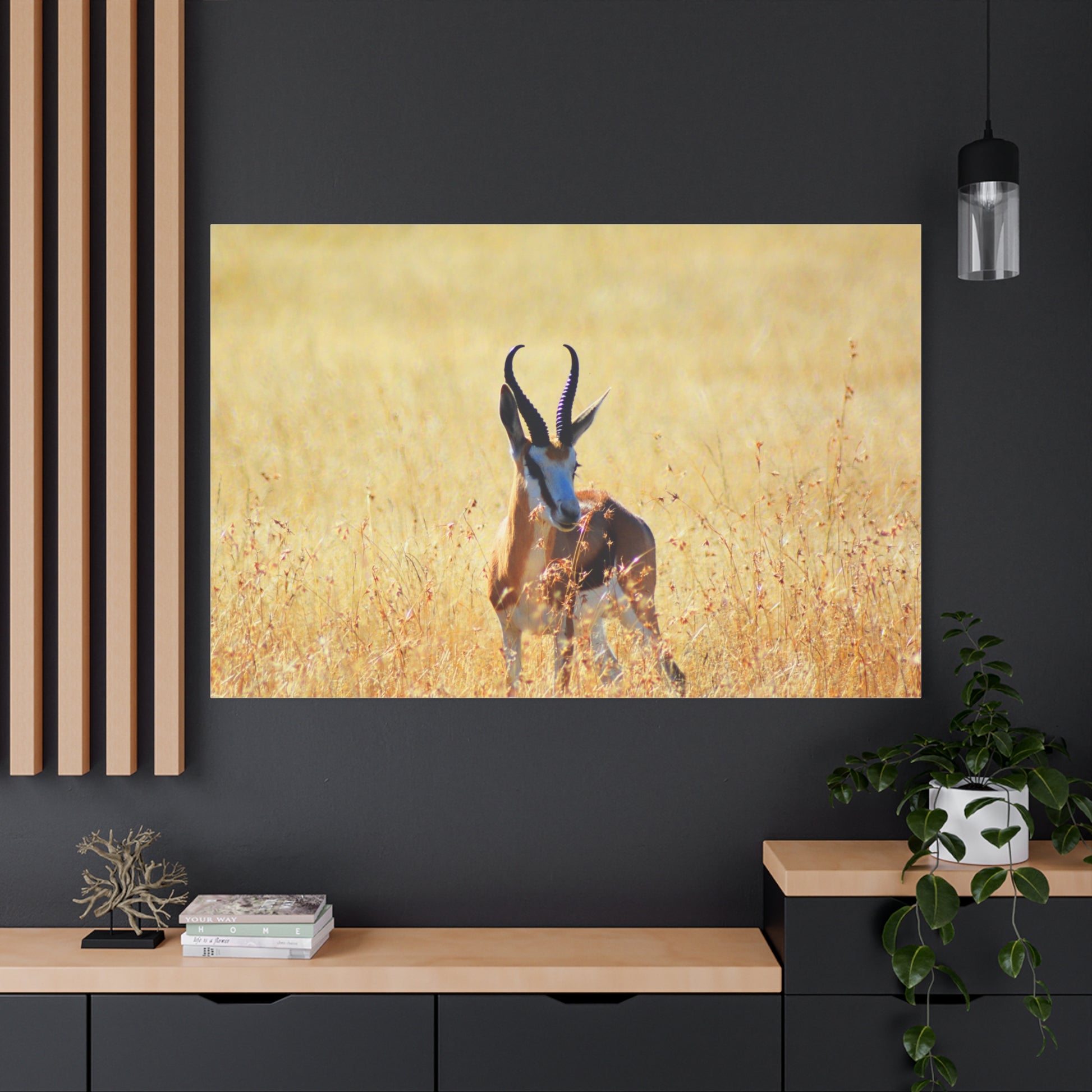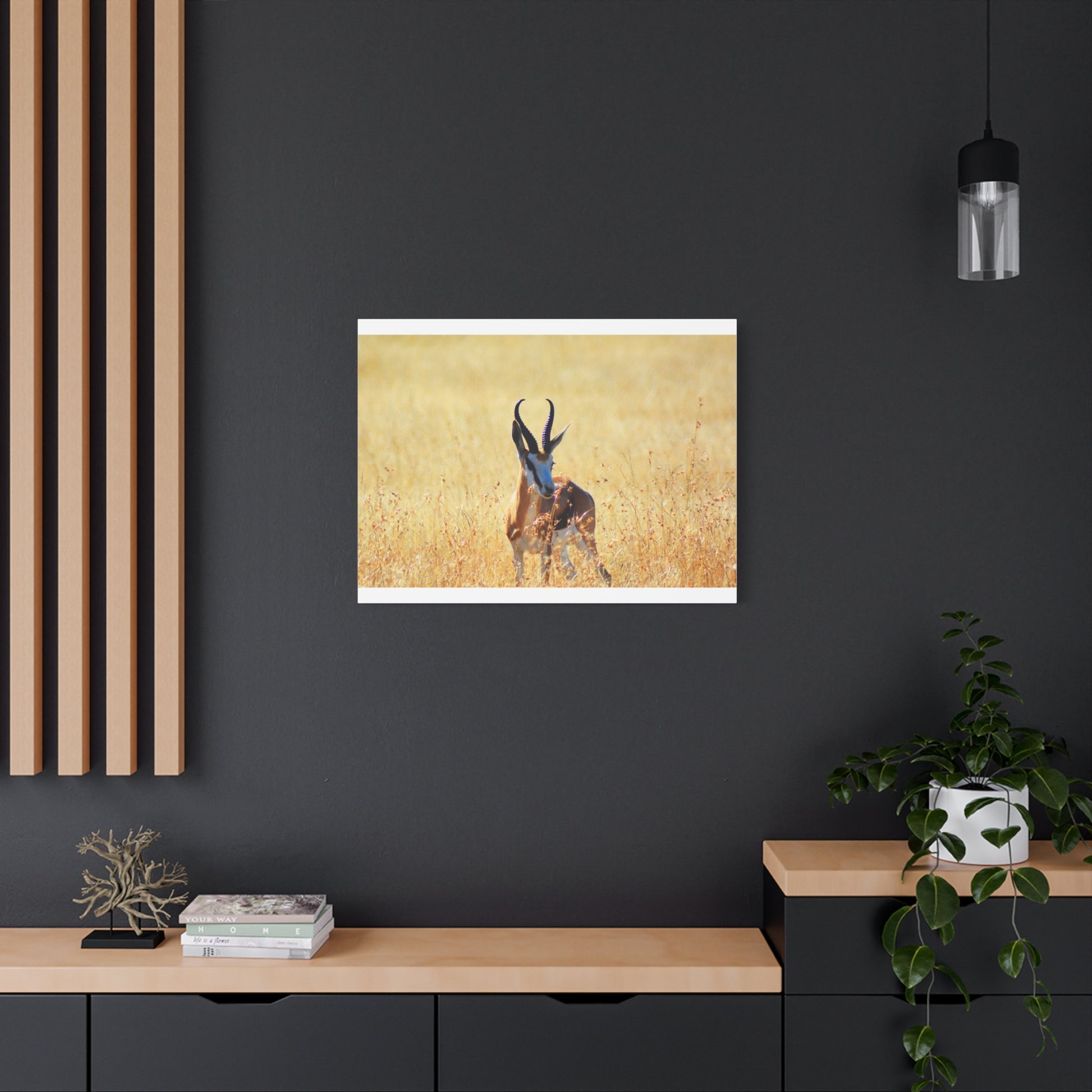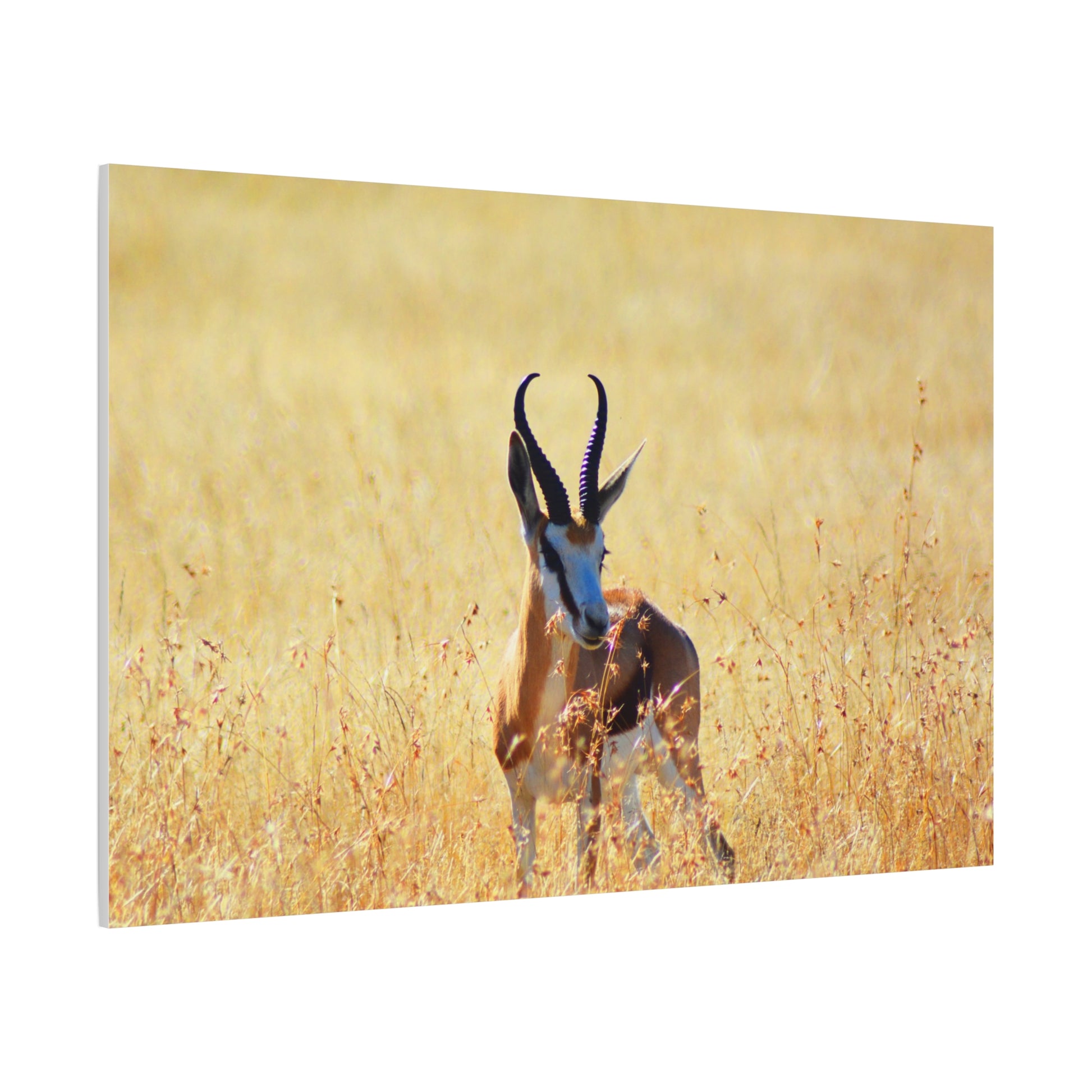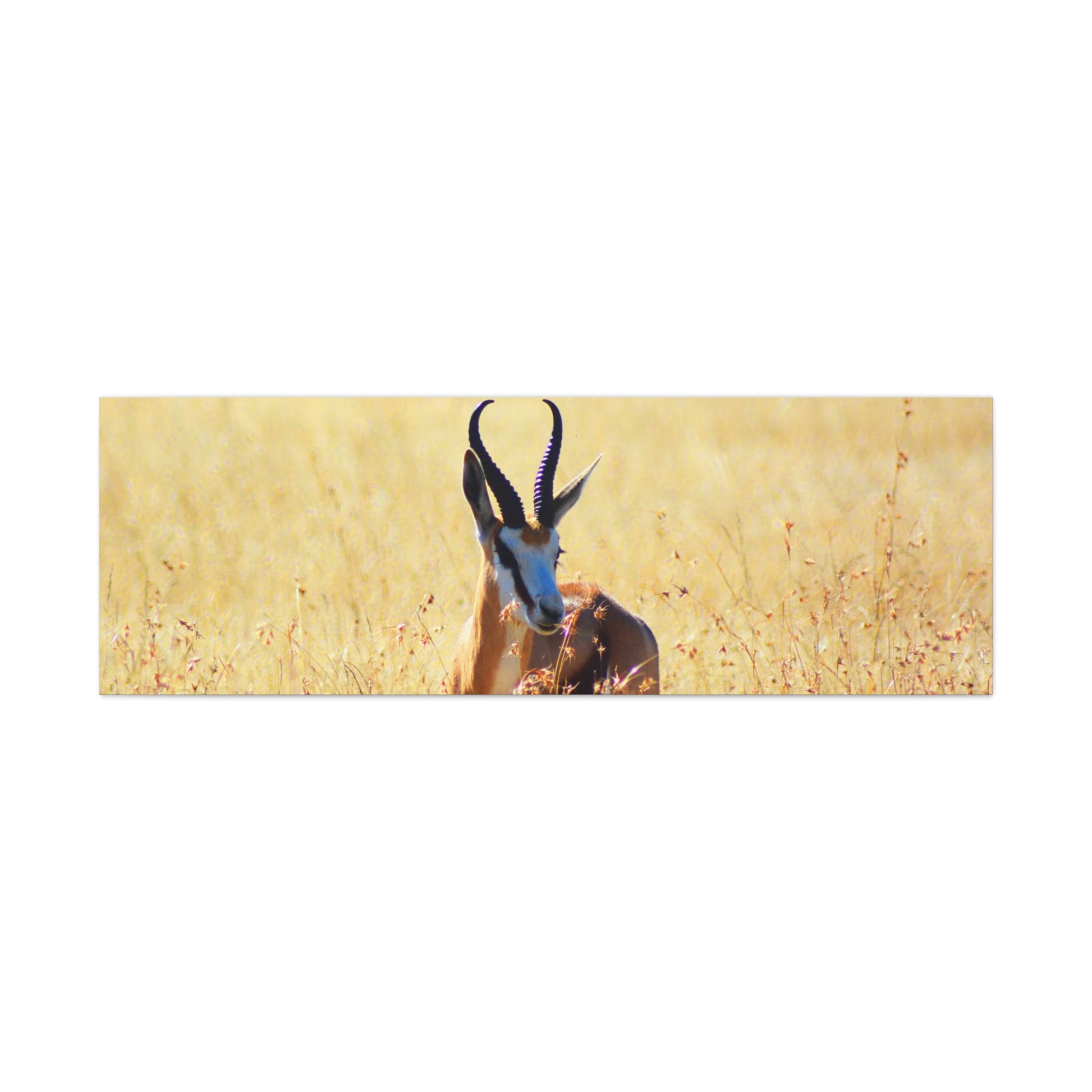 A stunning Matte Canvas print of a Springbok Ram in Africa, perfect for nature lovers and wildlife enthusiasts. Bring the beauty of the African savannah into your home with this unique piece that exudes a sense of adventure and natural beauty. Ideal for those looking to add a touch of the wild to their decor, this canvas print is a great gift for animal lovers and those who appreciate the beauty of nature. Perfect for Earth Day, wildlife conservation events, and African-themed celebrations.