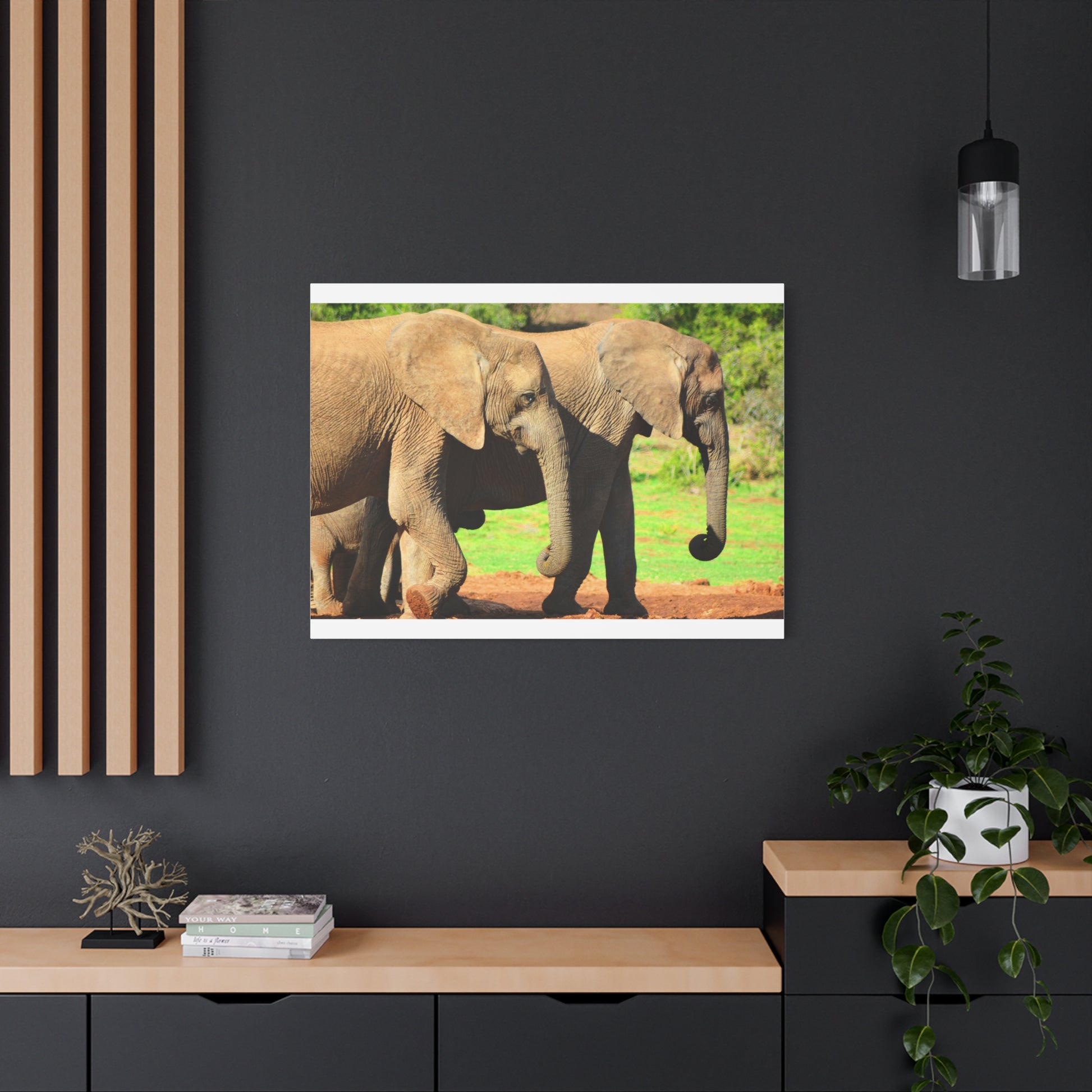 Bring the majesty of Elephants in Africa into your home with this stunning canvas print. Perfect for nature lovers and wildlife enthusiasts, this piece will add a touch of exotic flair to any room. Ideal for decorating living rooms, offices, or as a gift for animal lovers. Perfect for Earth Day, World Wildlife Day, or any occasion.