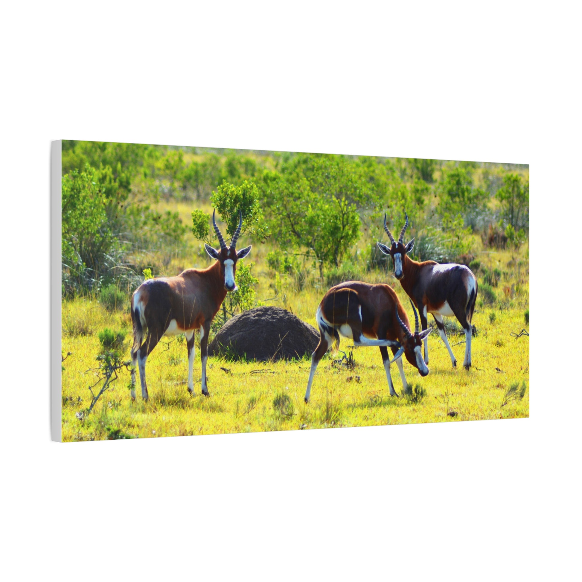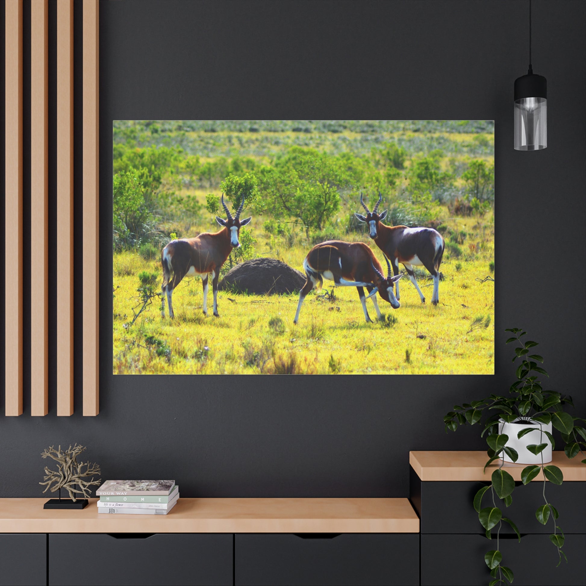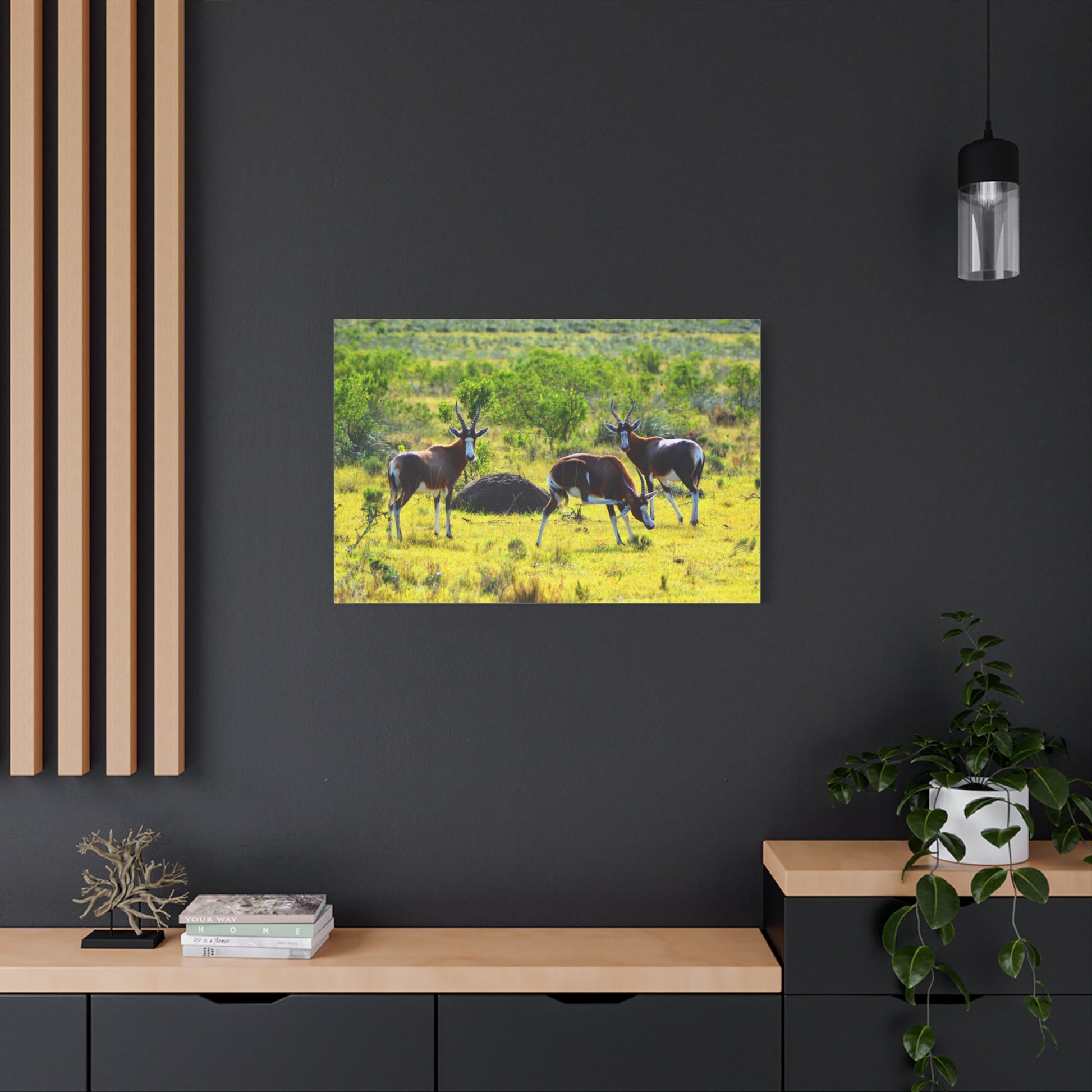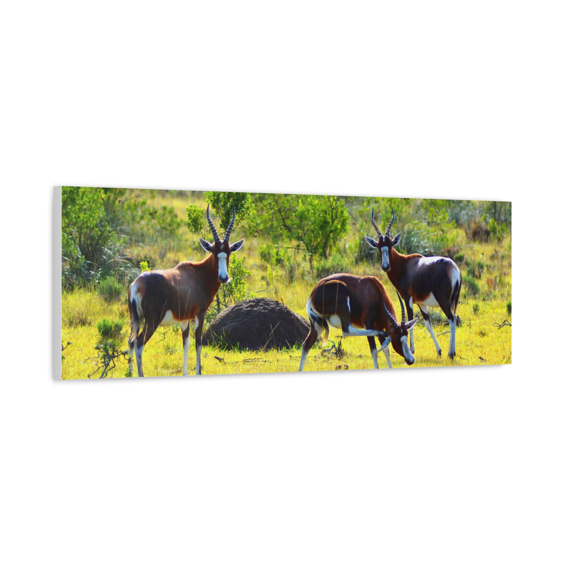 Experience the beauty and serenity of Africa with this blesbok canvas print. Perfect for nature lovers and those seeking a touch of wildlife in their home decor. Ideal for adding a rustic and adventurous vibe to any room. Great for gifting during wildlife conservation events and Earth Day.