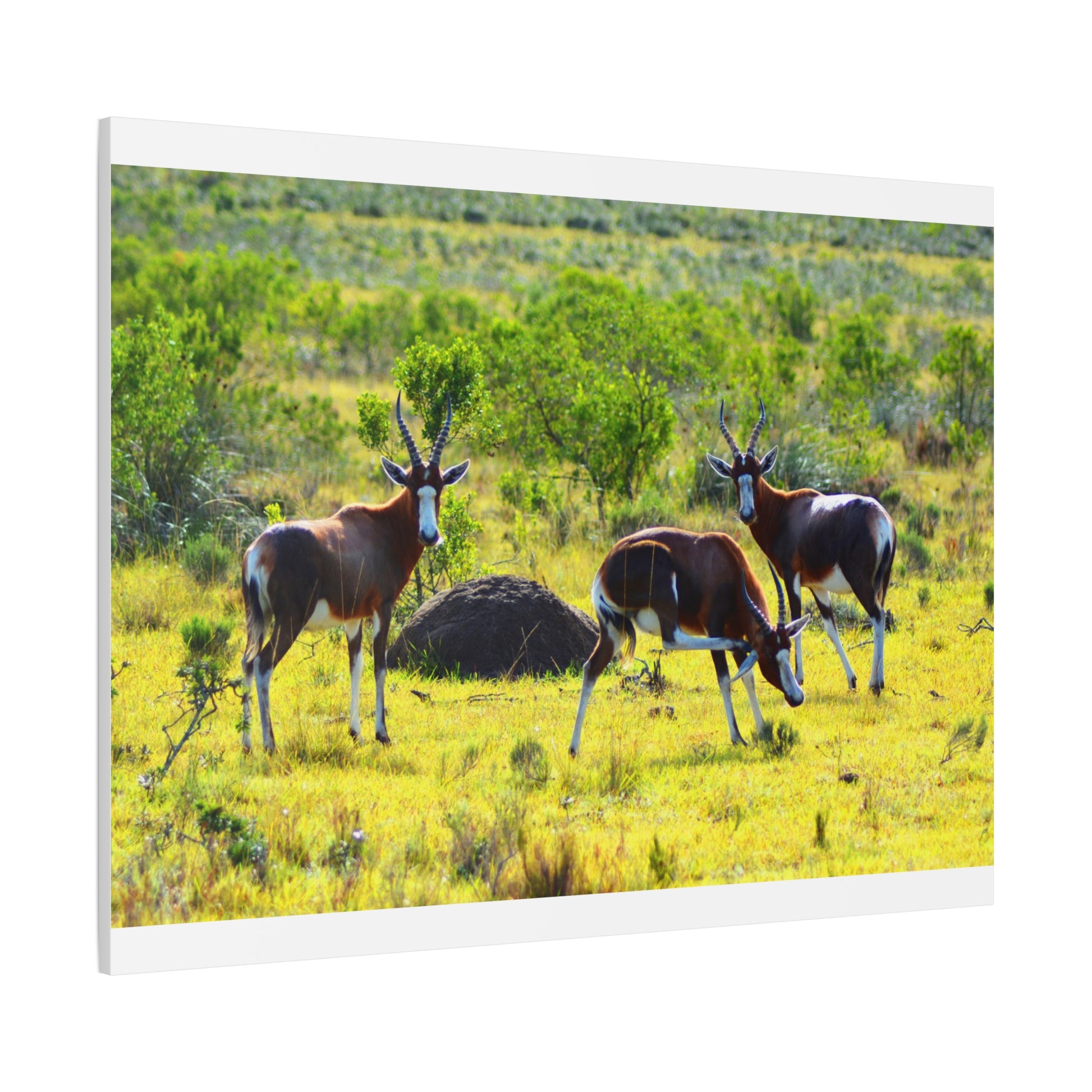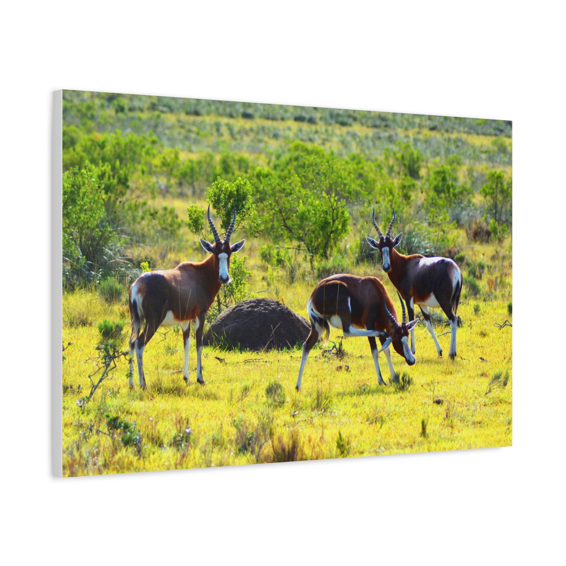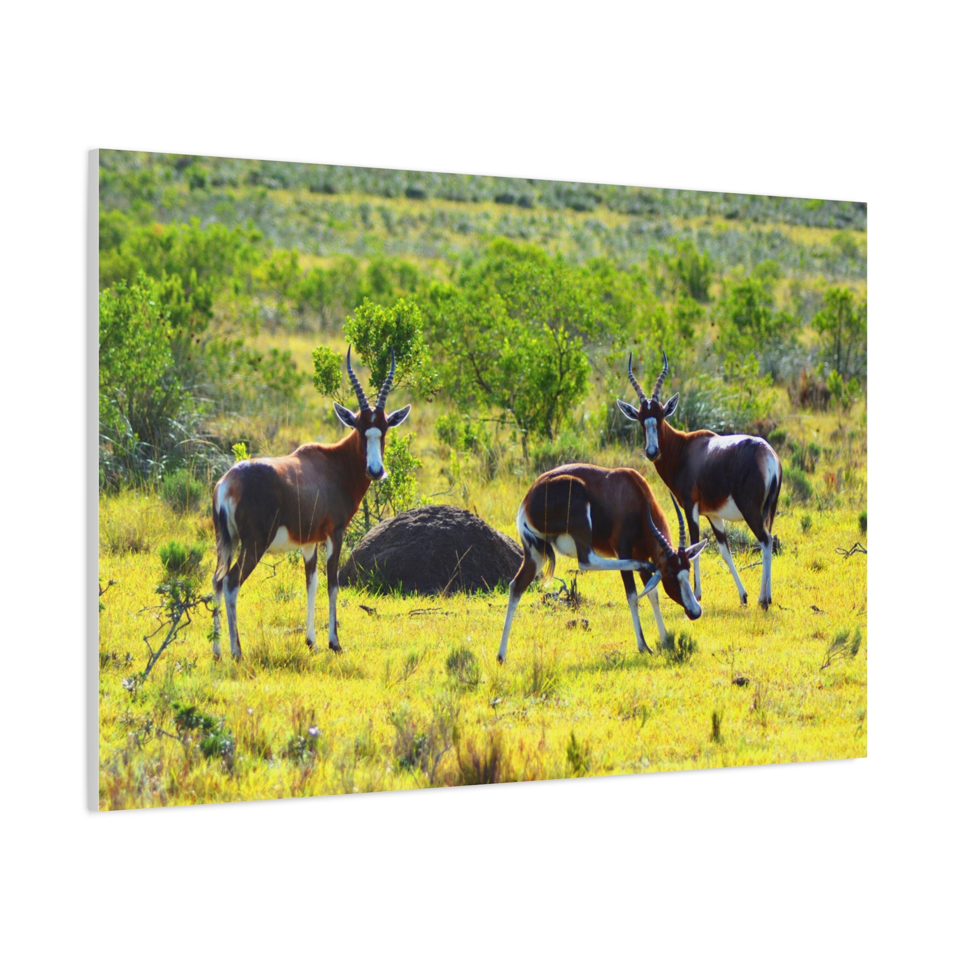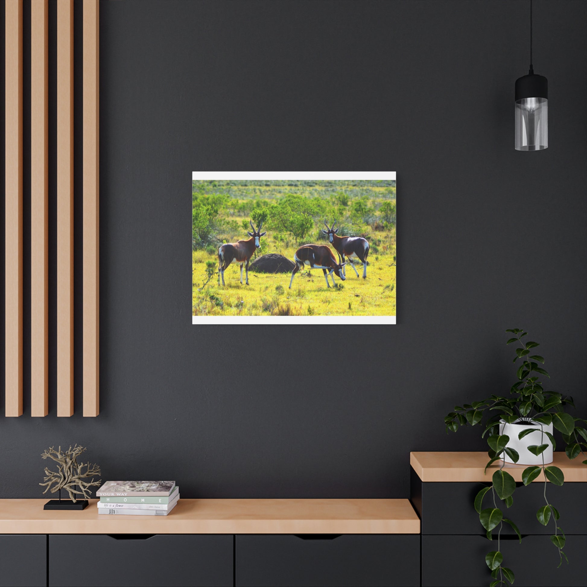 Experience the beauty and serenity of Africa with this blesbok canvas print. Perfect for nature lovers and those seeking a touch of wildlife in their home decor. Ideal for adding a rustic and adventurous vibe to any room. Great for gifting during wildlife conservation events and Earth Day.