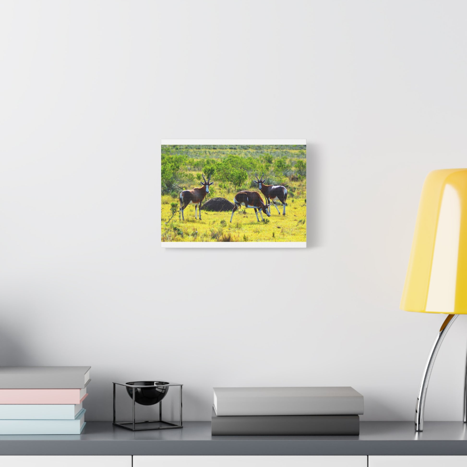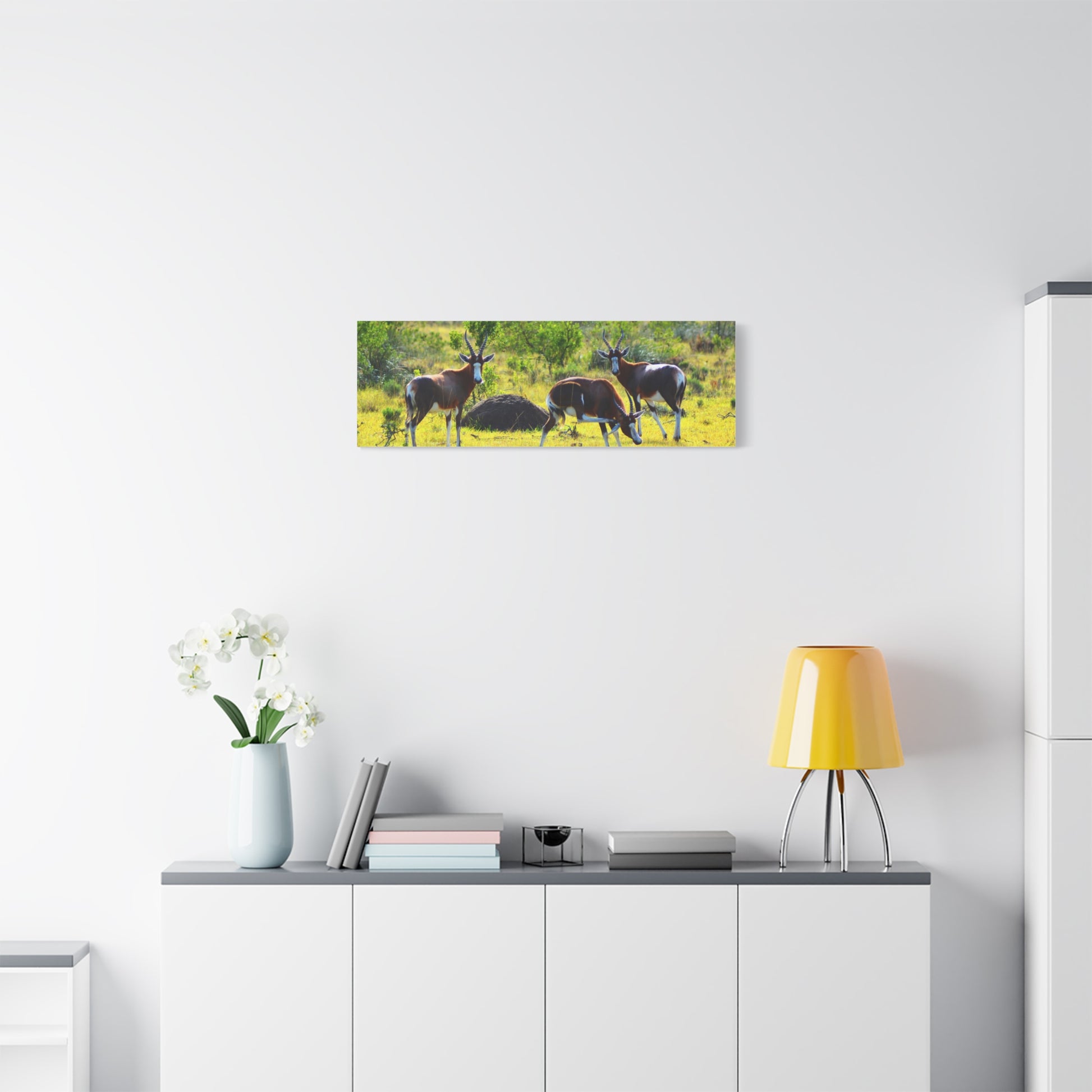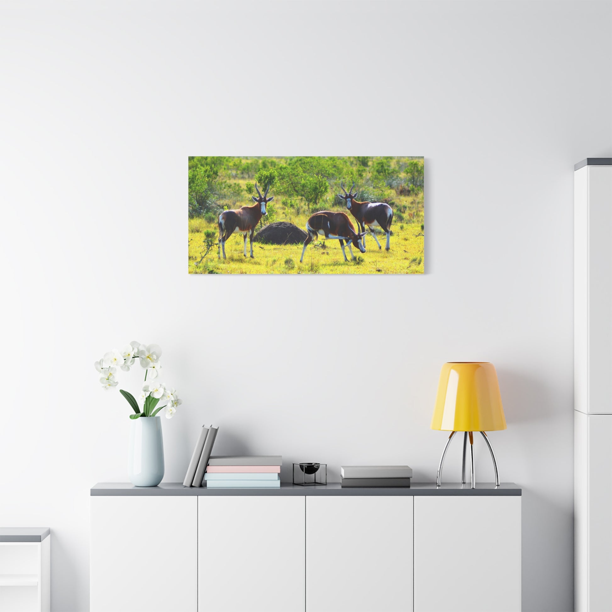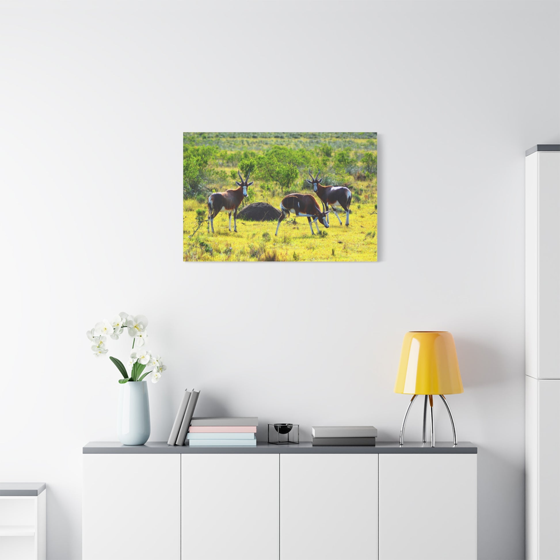 Experience the beauty and serenity of Africa with this blesbok canvas print. Perfect for nature lovers and those seeking a touch of wildlife in their home decor. Ideal for adding a rustic and adventurous vibe to any room. Great for gifting during wildlife conservation events and Earth Day.