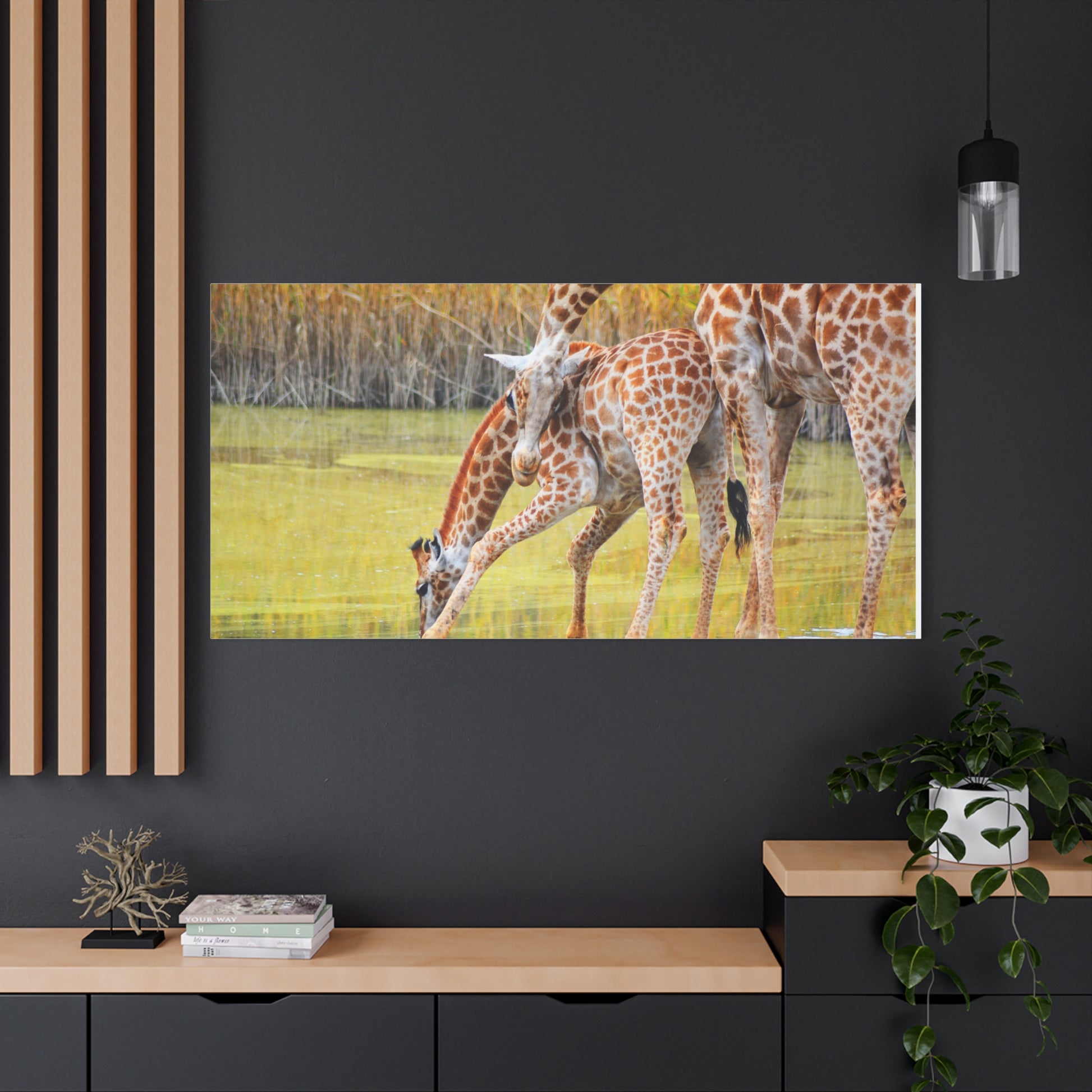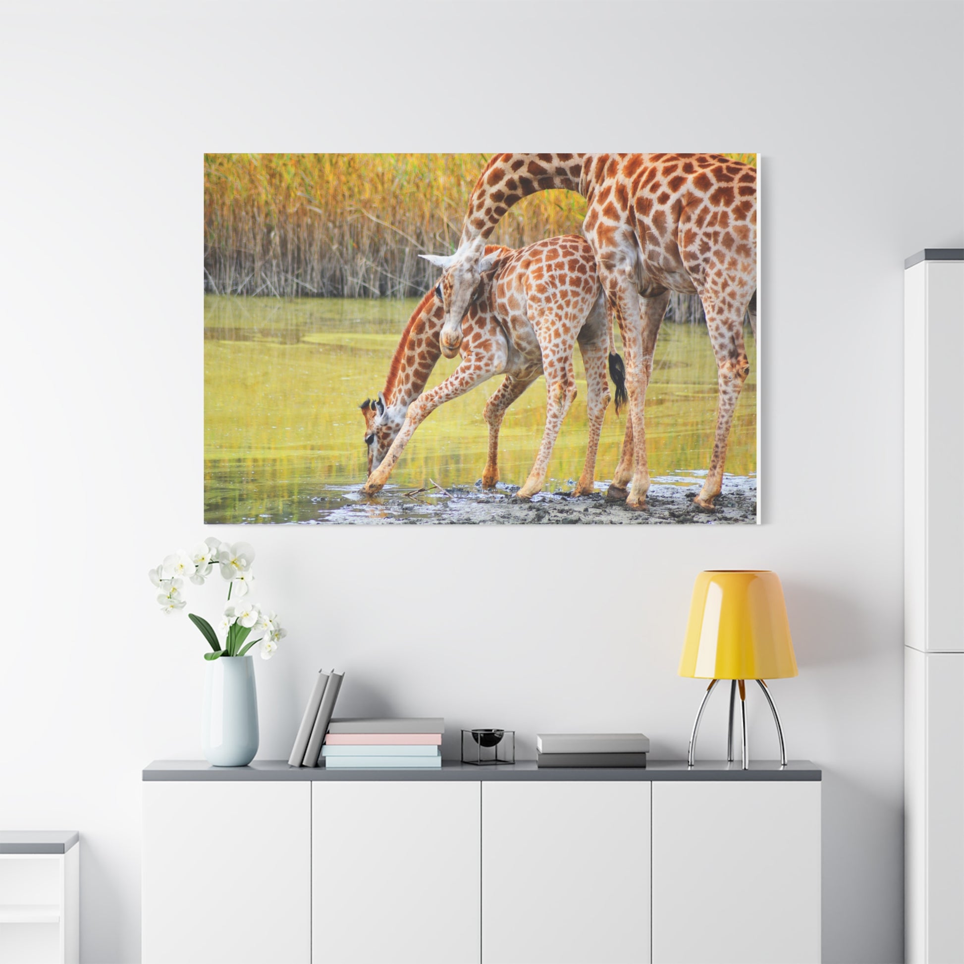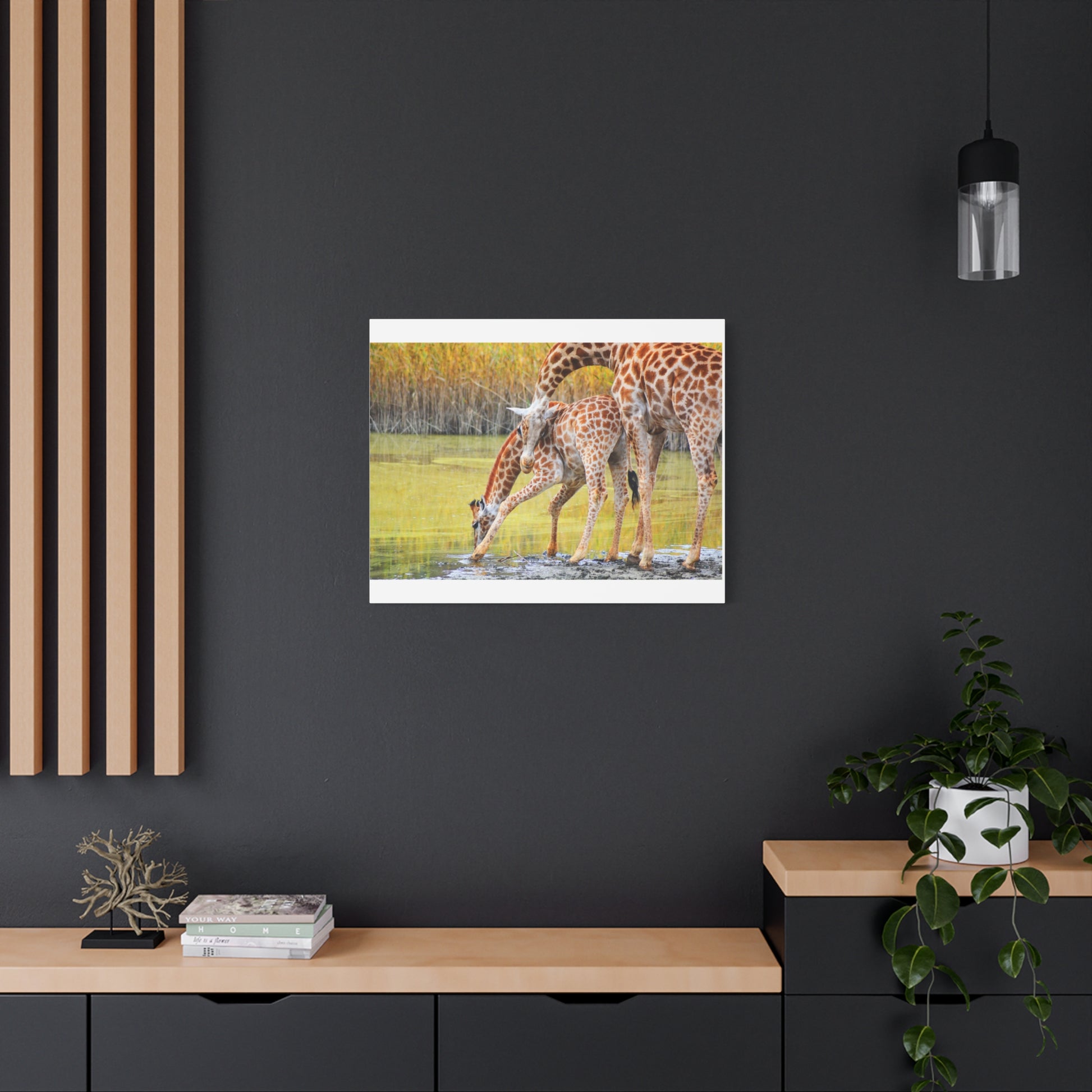Giraffe Family Matte Canvas Wall Art, Nature Decor, Wildlife Print, Animal Lovers Gift, Nursery Decoration