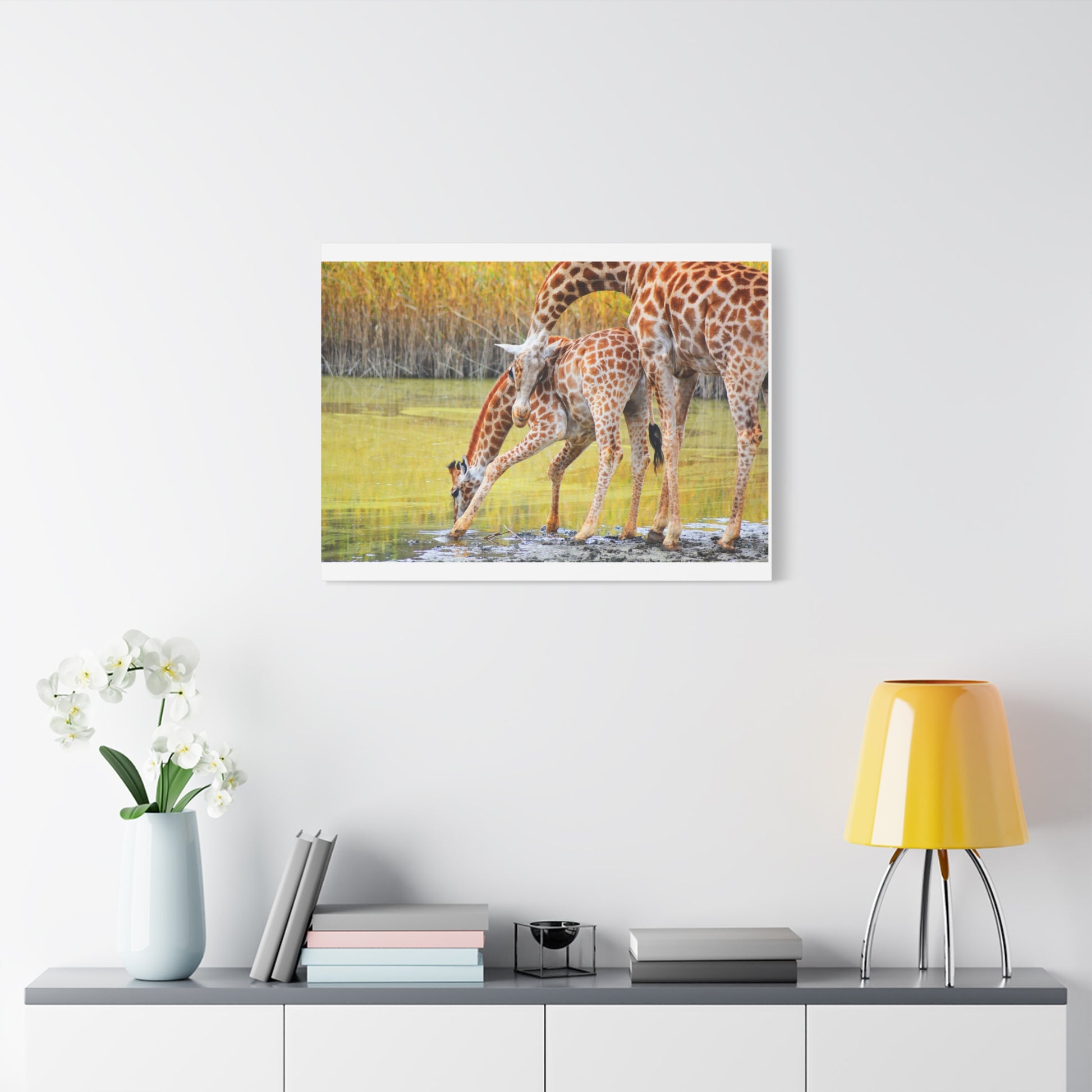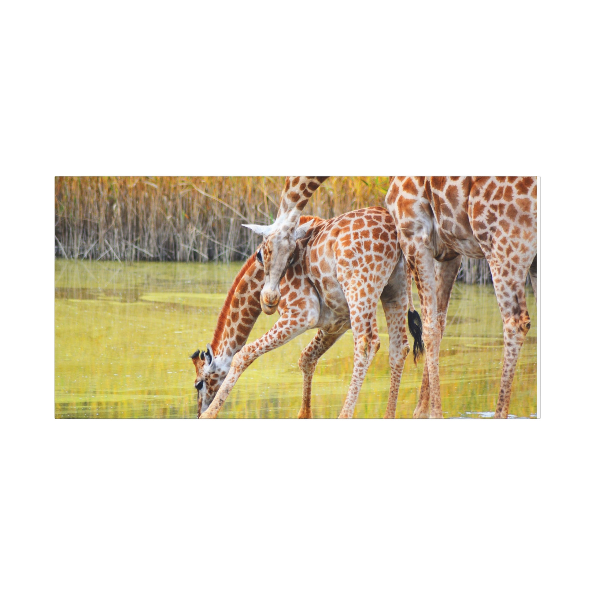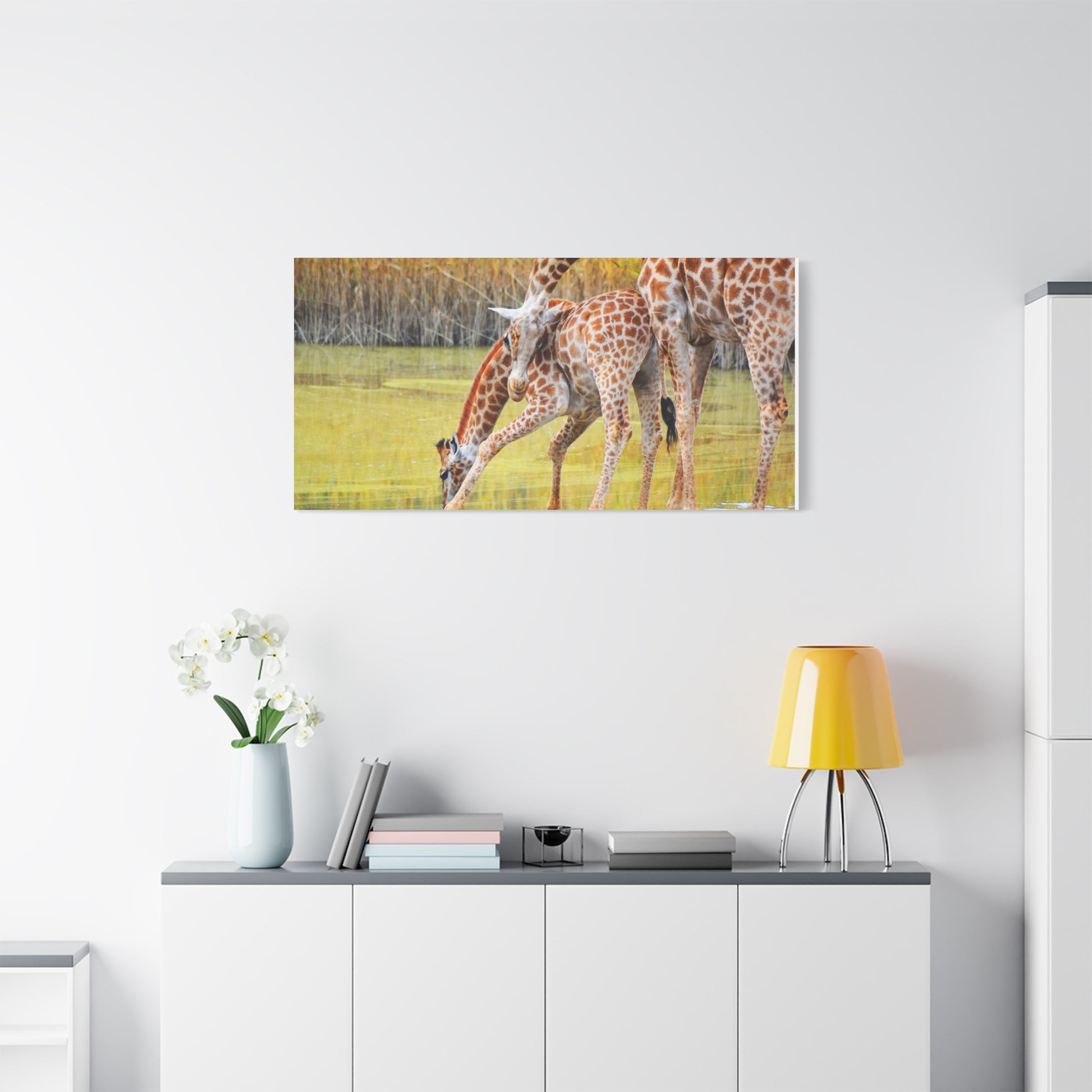 Giraffe Family Matte Canvas Wall Art, Nature Decor, Wildlife Print, Animal Lovers Gift, Nursery Decoration