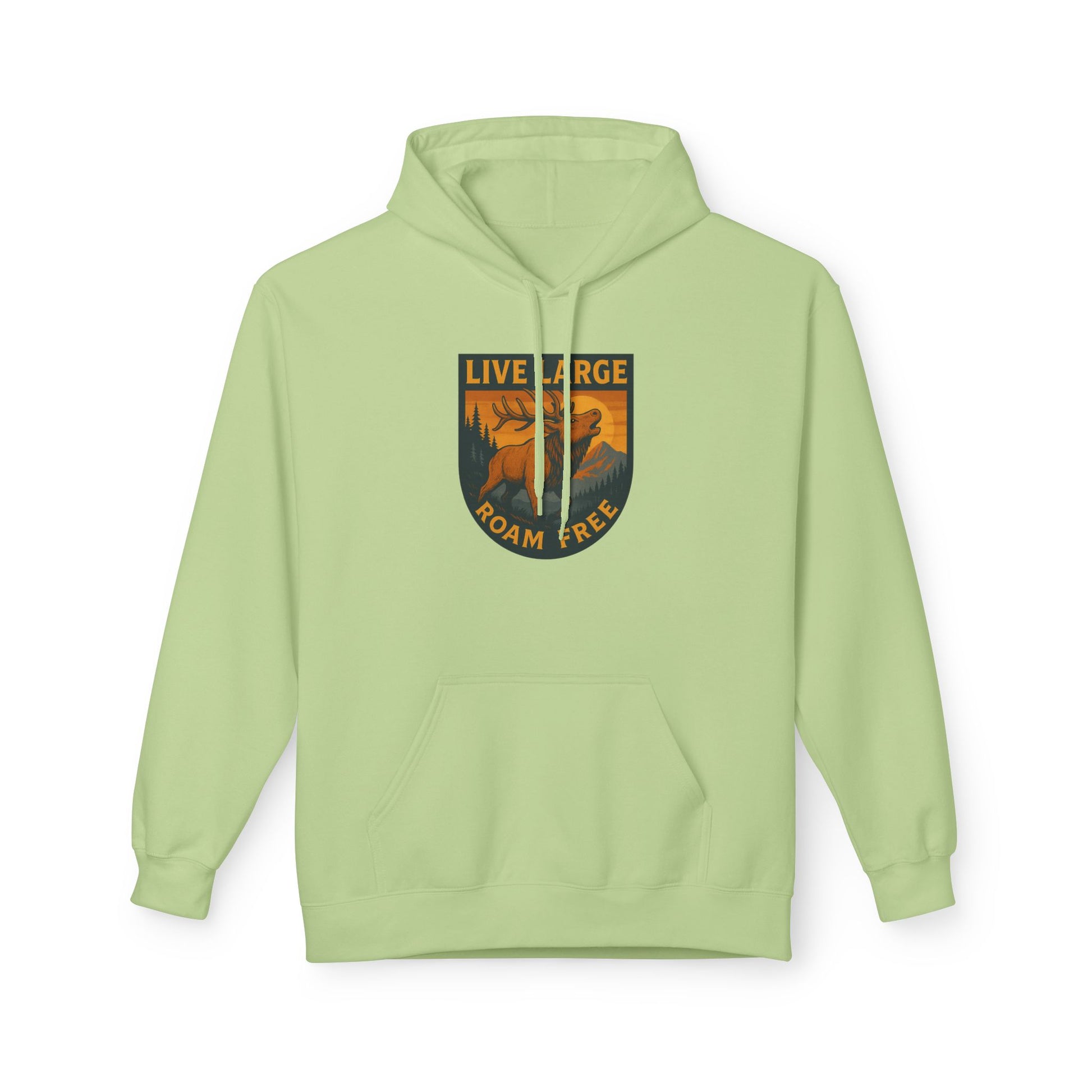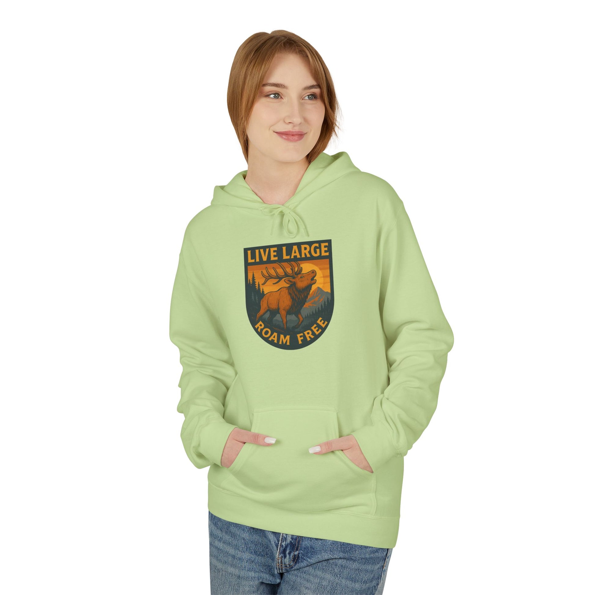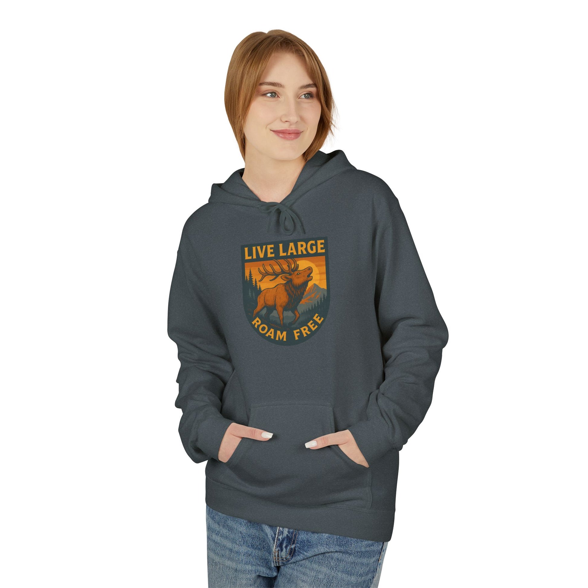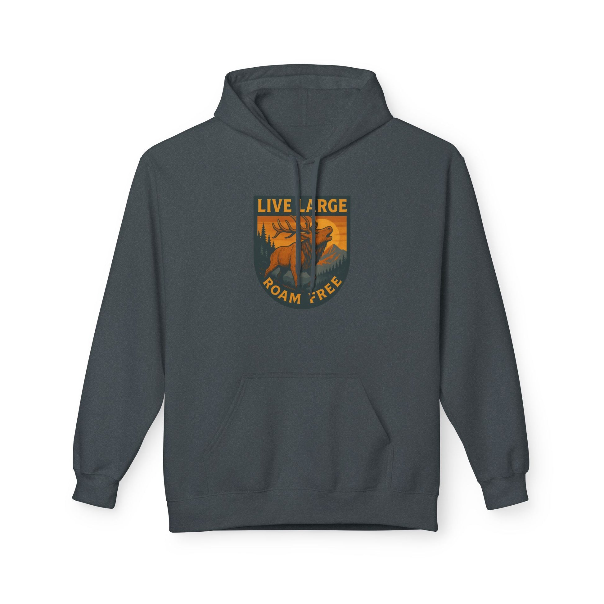 Live Large Roam Free Elk Hoodie | Cozy Fleece Sweatshirt for Outdoor Lovers, Adventure Gear, Casual Wear, Unisex Hoodie, Gift Idea