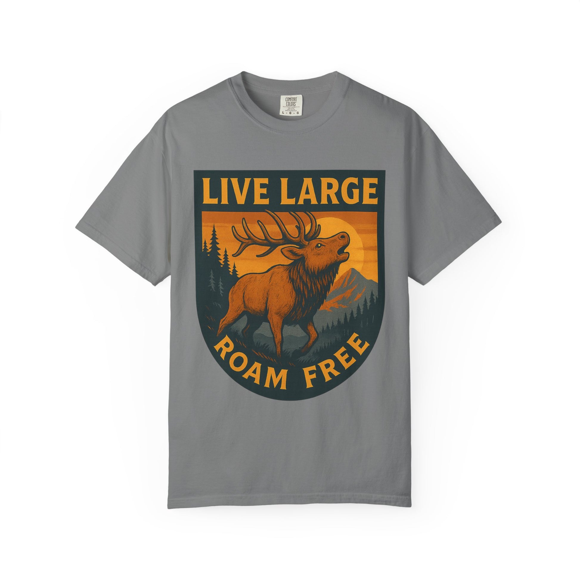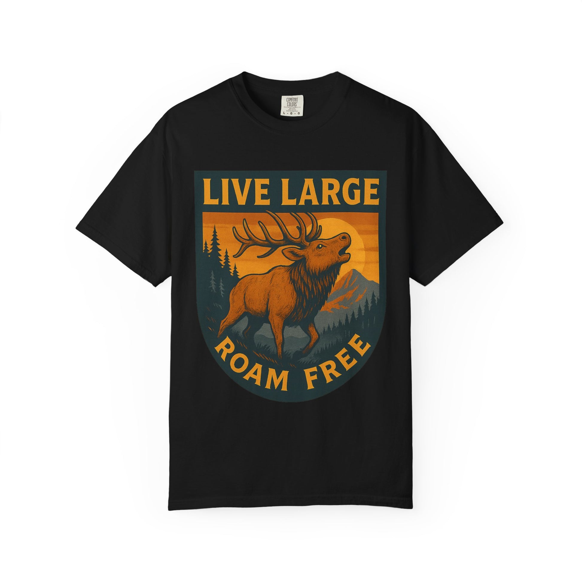 Live Large Roam Free Elk T-Shirt, Nature Lover Tee, Adventure Shirt, Outdoorsy Apparel, Gift for Him/Her, Vintage Style T-Shirt