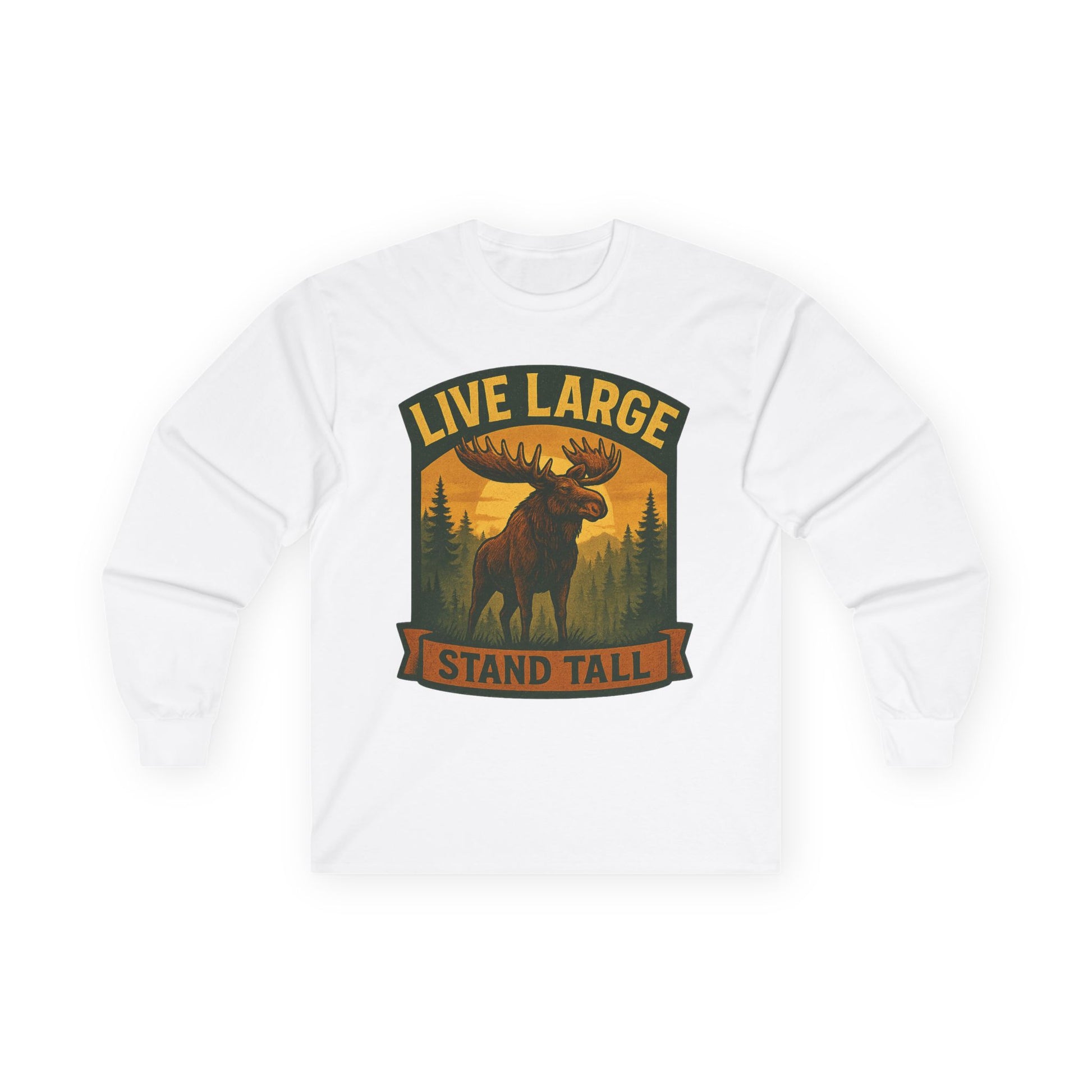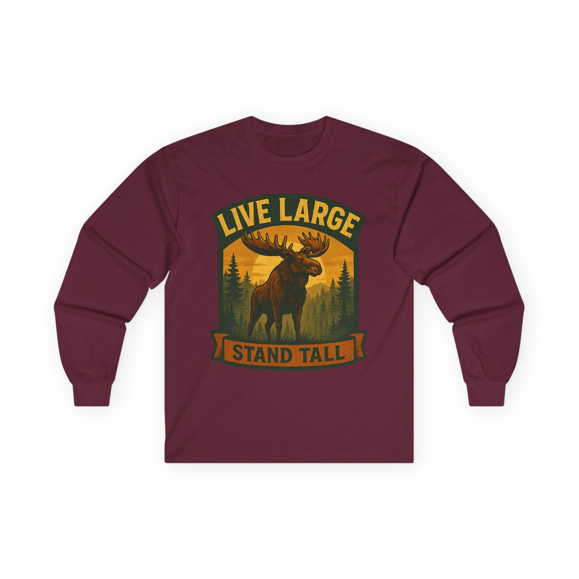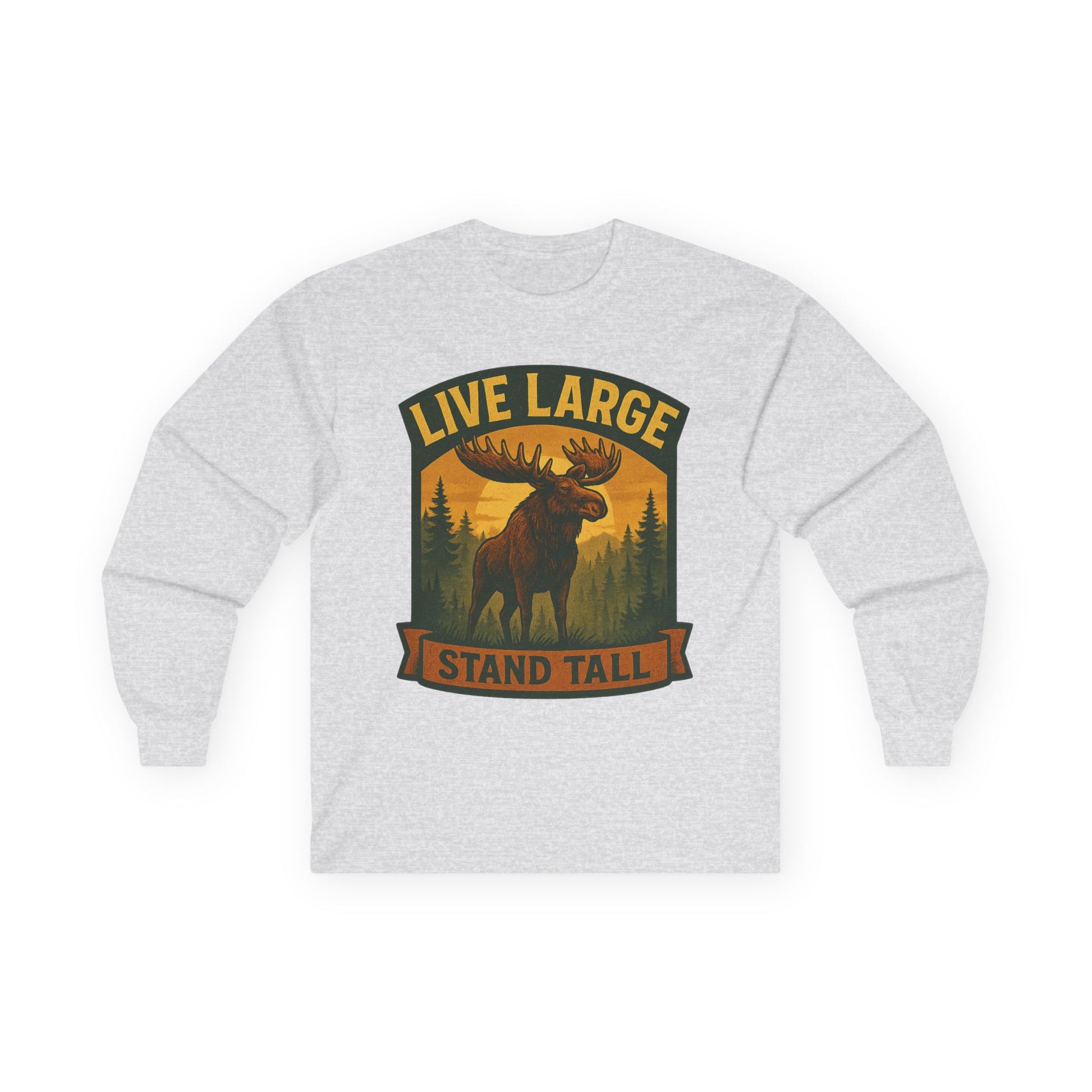 Moose Graphic Long Sleeve Tee | Live Large Stand Tall | Casual Style for Outdoorsy Vibes, Perfect for Gifts, Camping, Nature Lovers