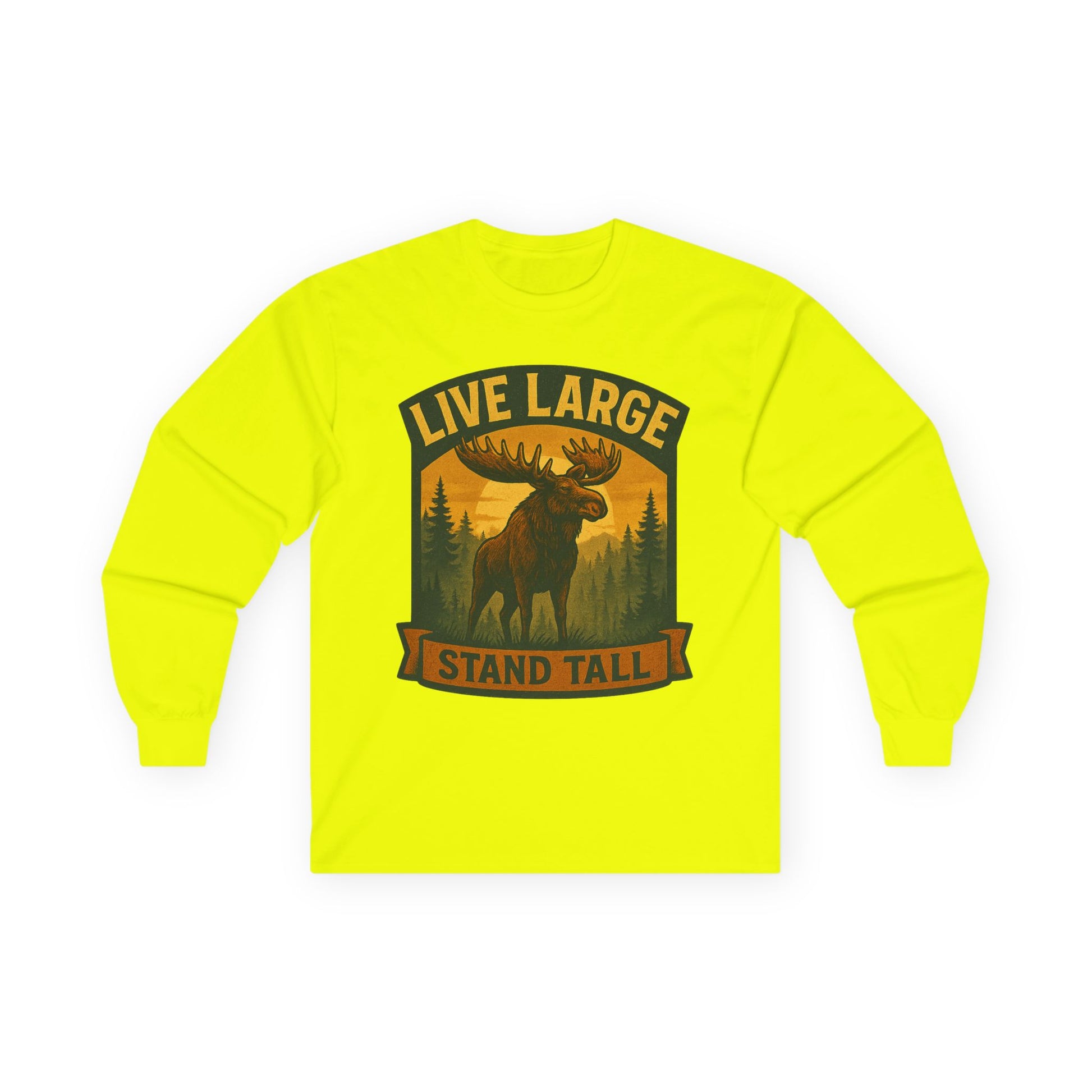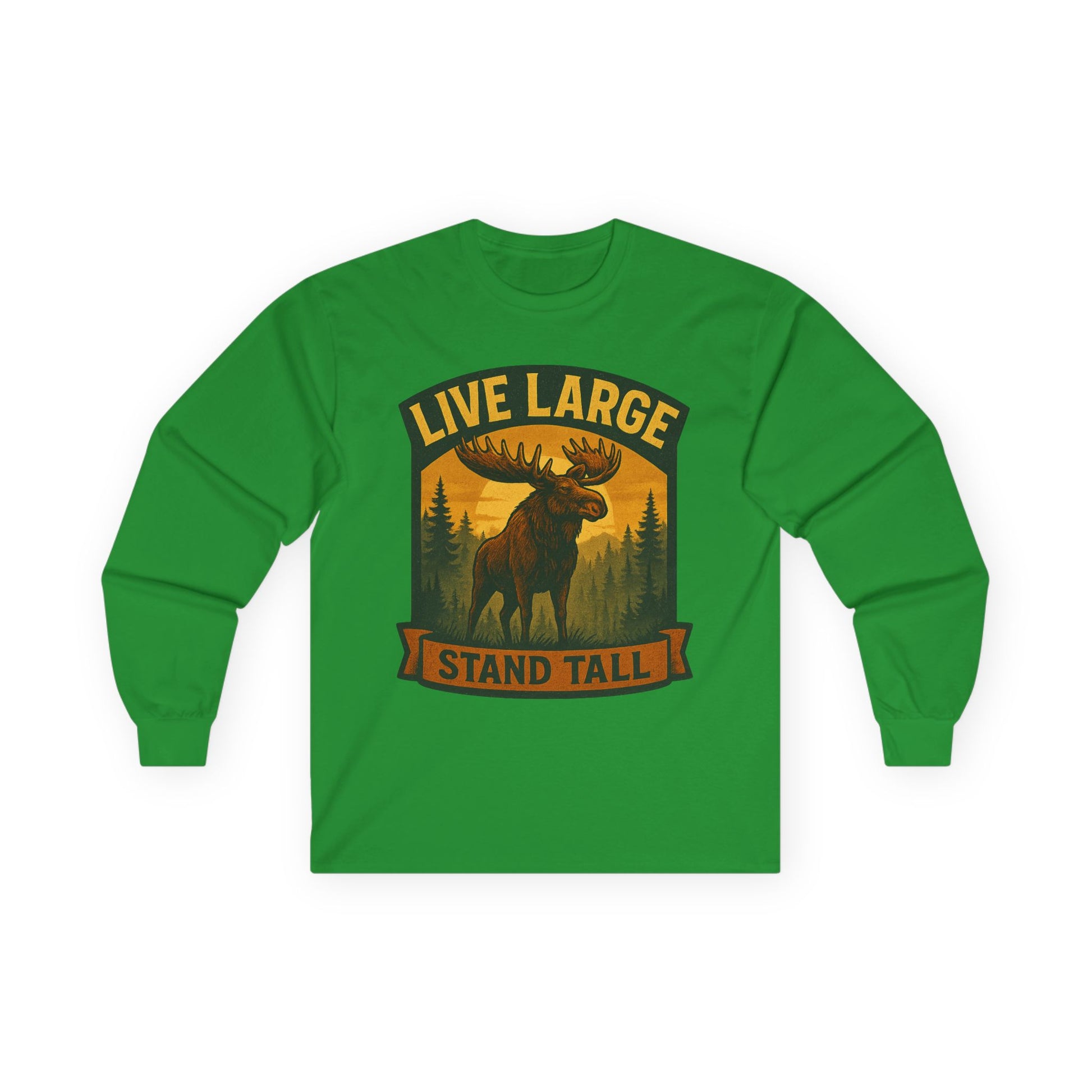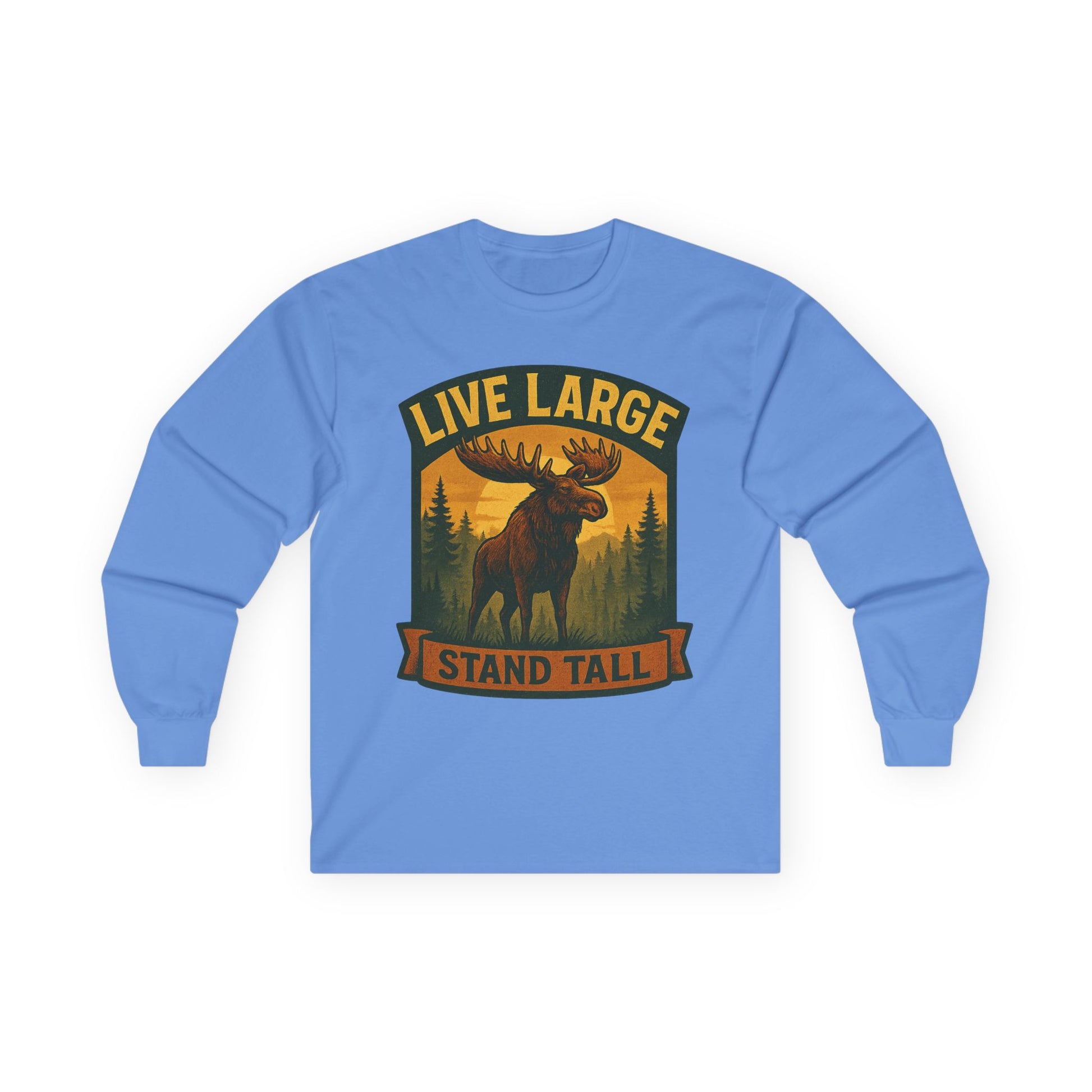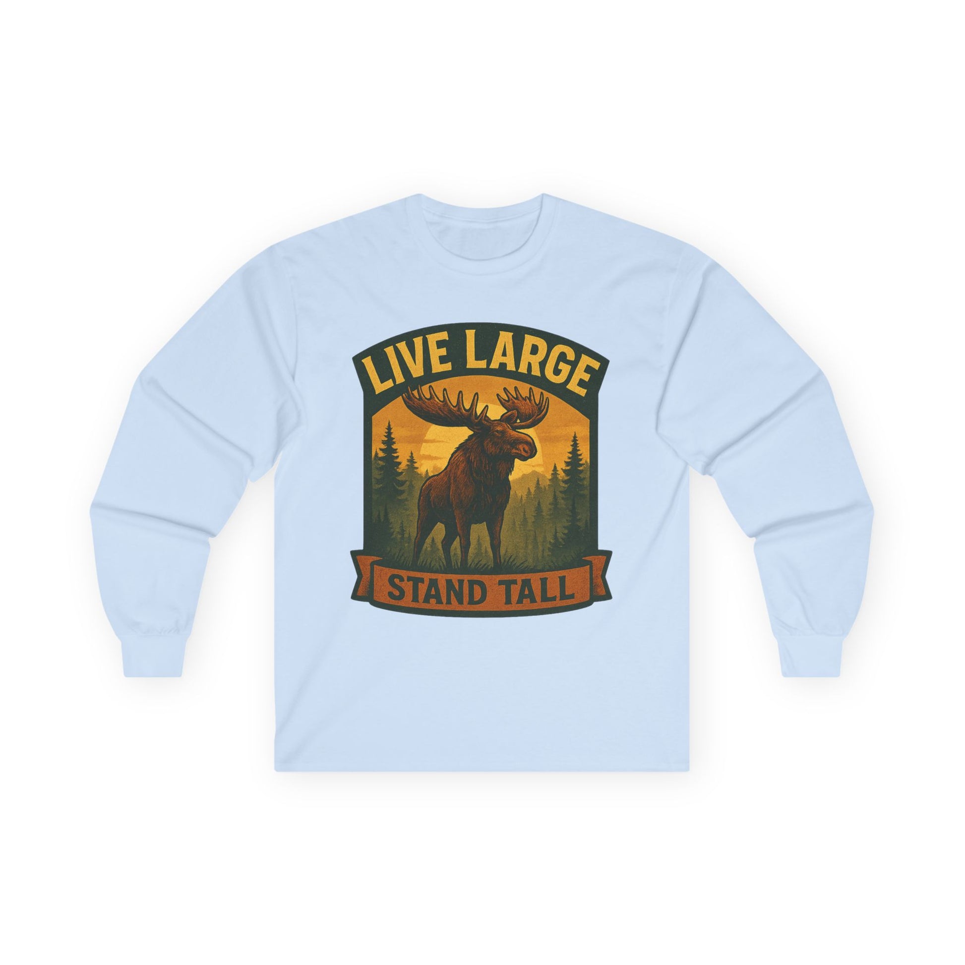Moose Graphic Long Sleeve Tee | Live Large Stand Tall | Casual Style for Outdoorsy Vibes, Perfect for Gifts, Camping, Nature Lovers
